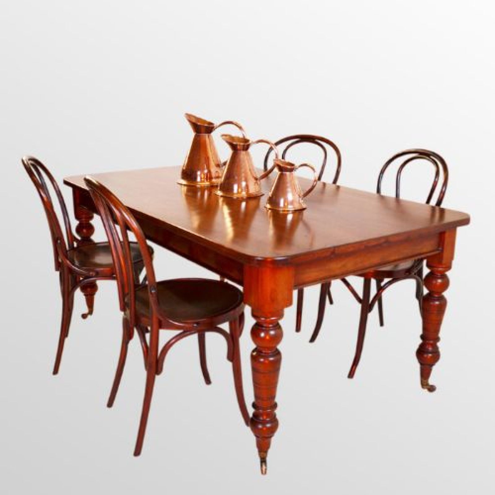 A fine Victorian antique mahogany Kitchen Dining table on ring legs riding over original castors. The table is perfectly proportioned and presented in exceptional condition. It offers a quality simply not available in modern pieces.