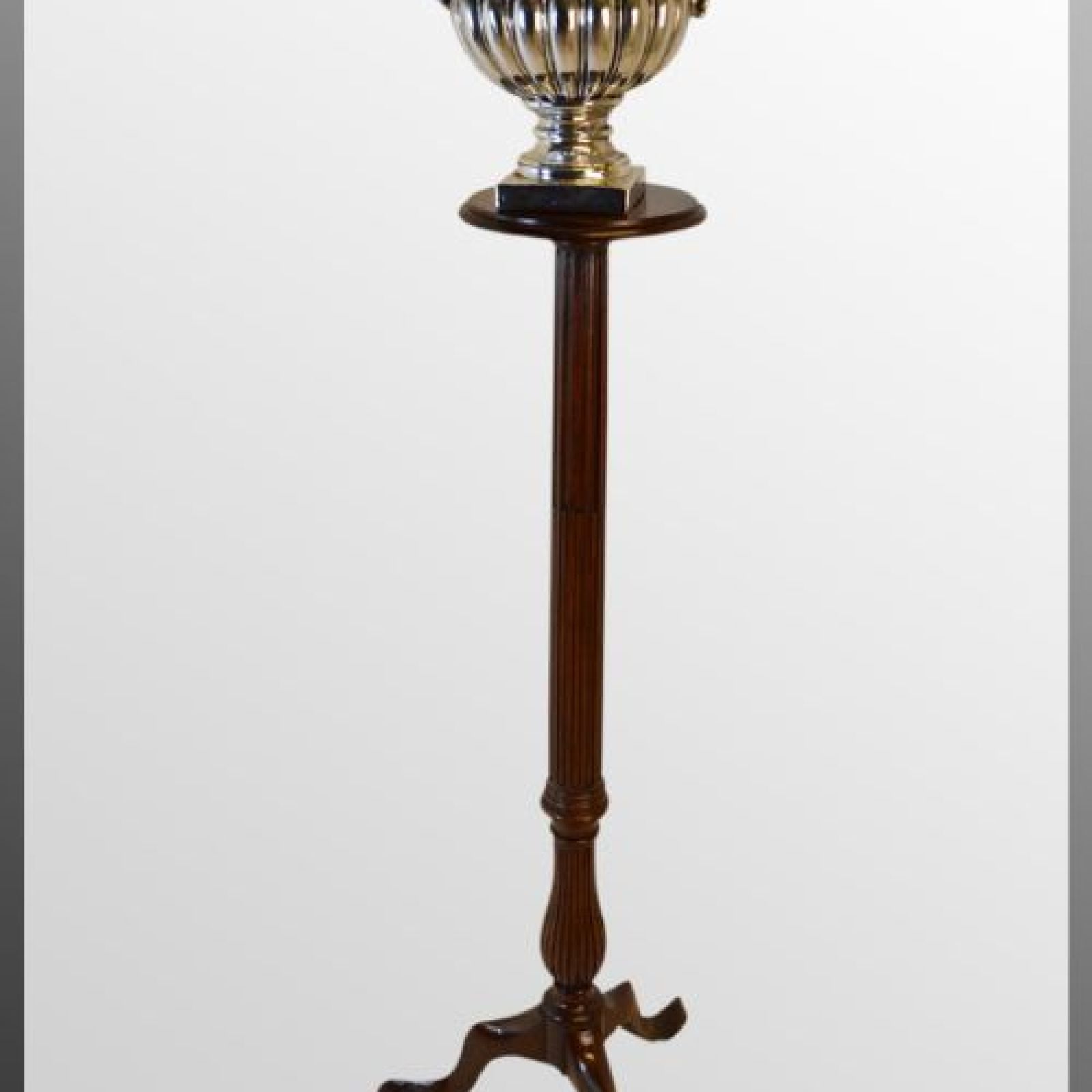 This stylish torchere has a very attractive reeded bulbous lower column, extending into the main reeded column with a step turned intersection.