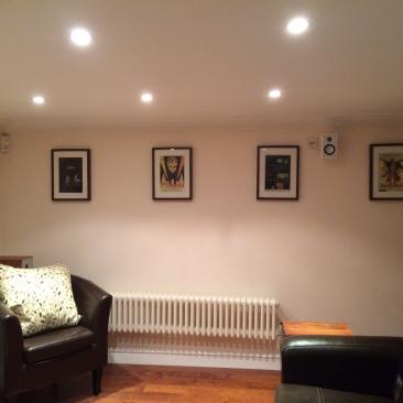 - Walls and ceiling plastered, with downlights as ceiling lights to save on headroom