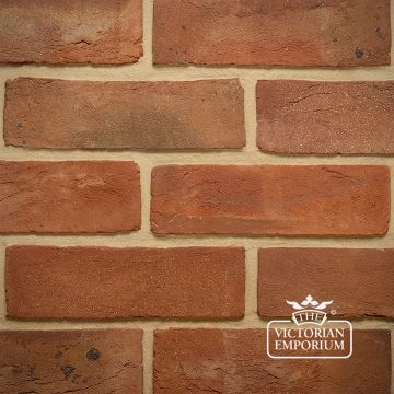 These are brick slips made from full size imperial sized bricks in all the traditional finishes, along with a range of Victorian brick tiles. These products are typically used for cladding interior walls to give them a bare brick look but can be used outdoors too and on the inside of fireplaces. Often brick slips for fireplaces are laid in a traditional herringbone pattern.