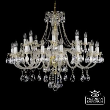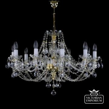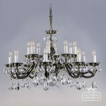The crystal trimmings on our chandeliers are as follows: Exclusive Bohemian Crystal (Czech republic 30%PbO). The machine cut trimmings are characteristic with a brilliant polish and decompose the light beams in a light spectrum. Preciosa crystal (Czech republic 30%PbO).