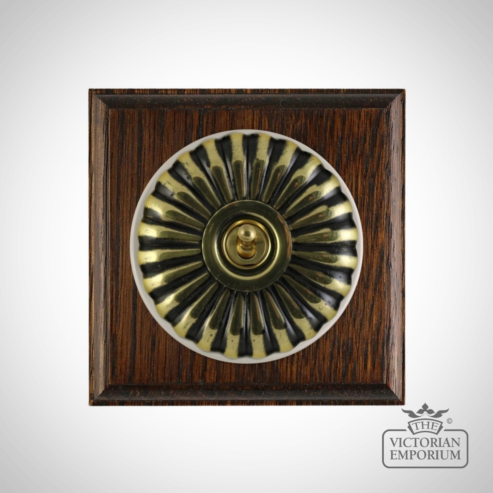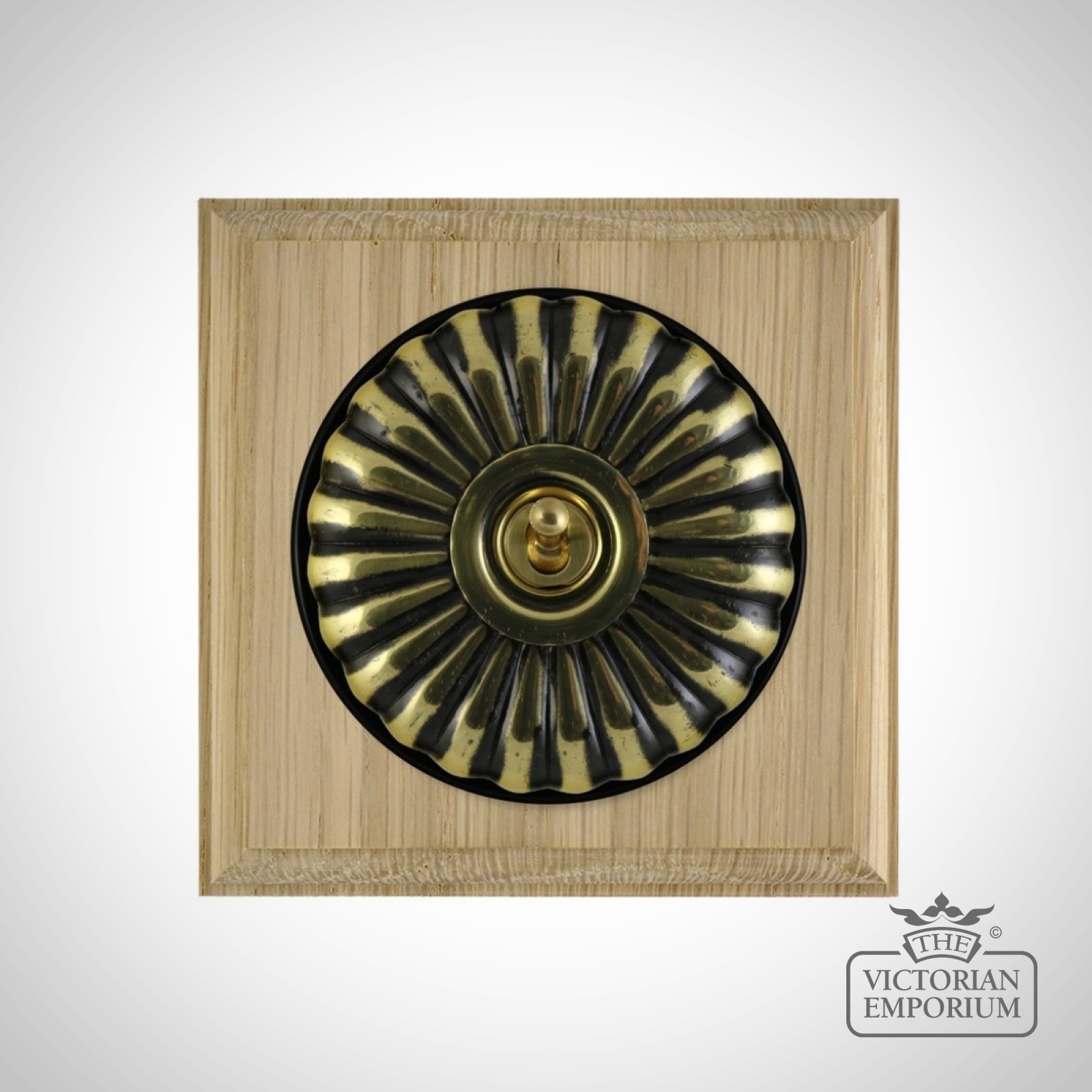 These are reproduced from original light switches from around 1900. The brass domes are hand finished and have oak pattresses. They are designed to meet all current safety standards with modern wiring.