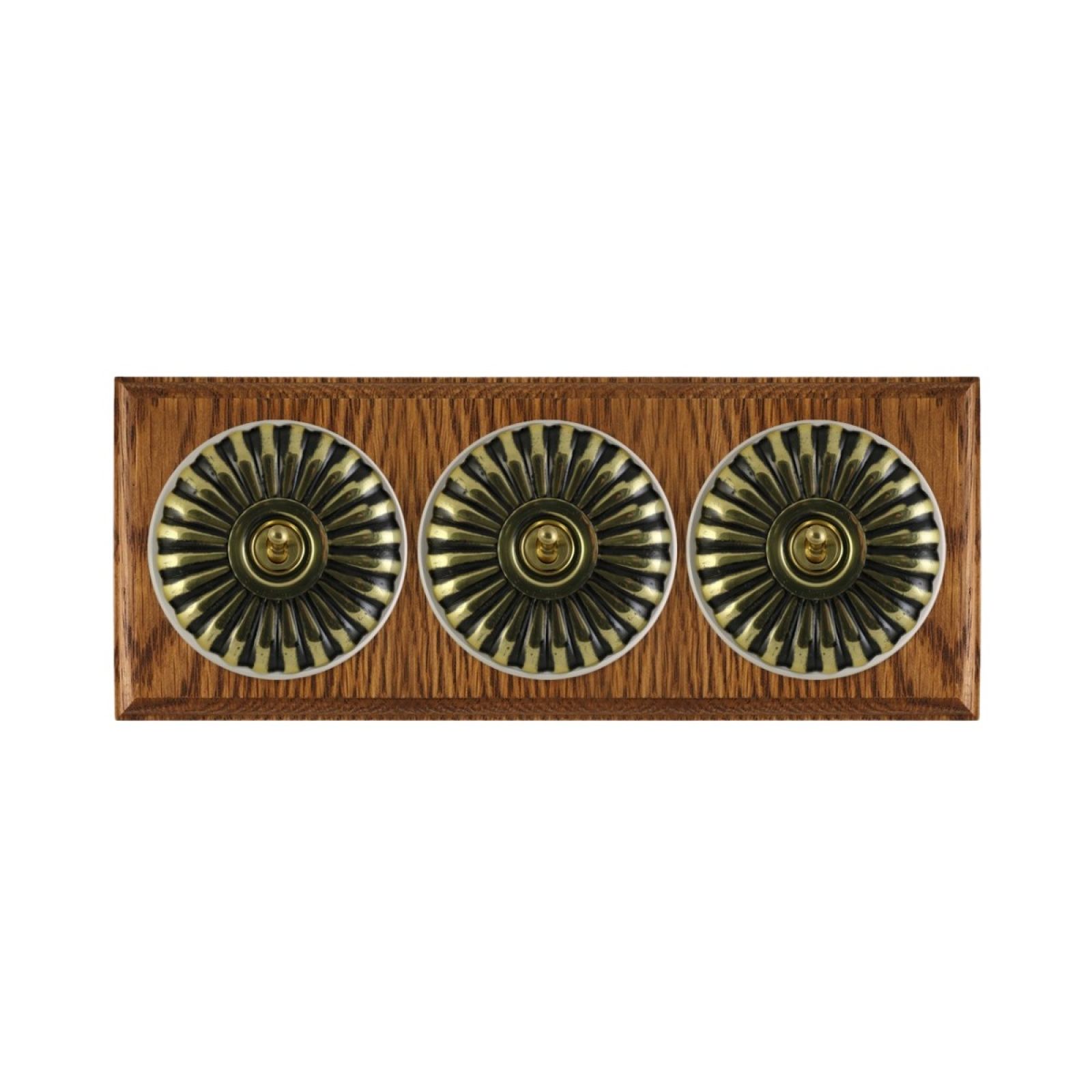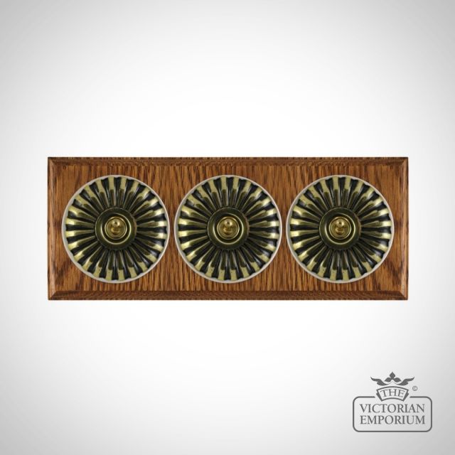 3 Gang Brass Period Light Switch - fluted in a choice of finishes