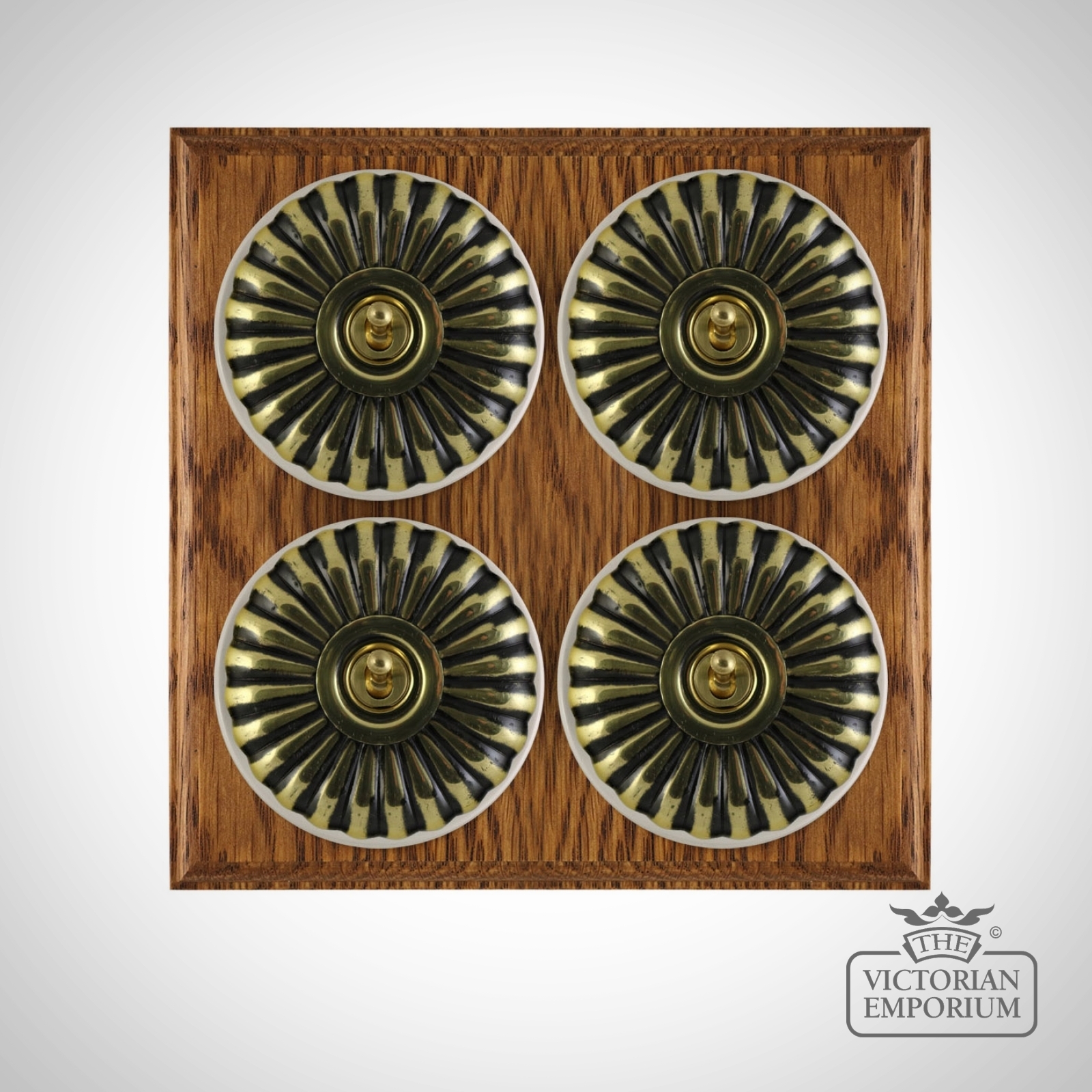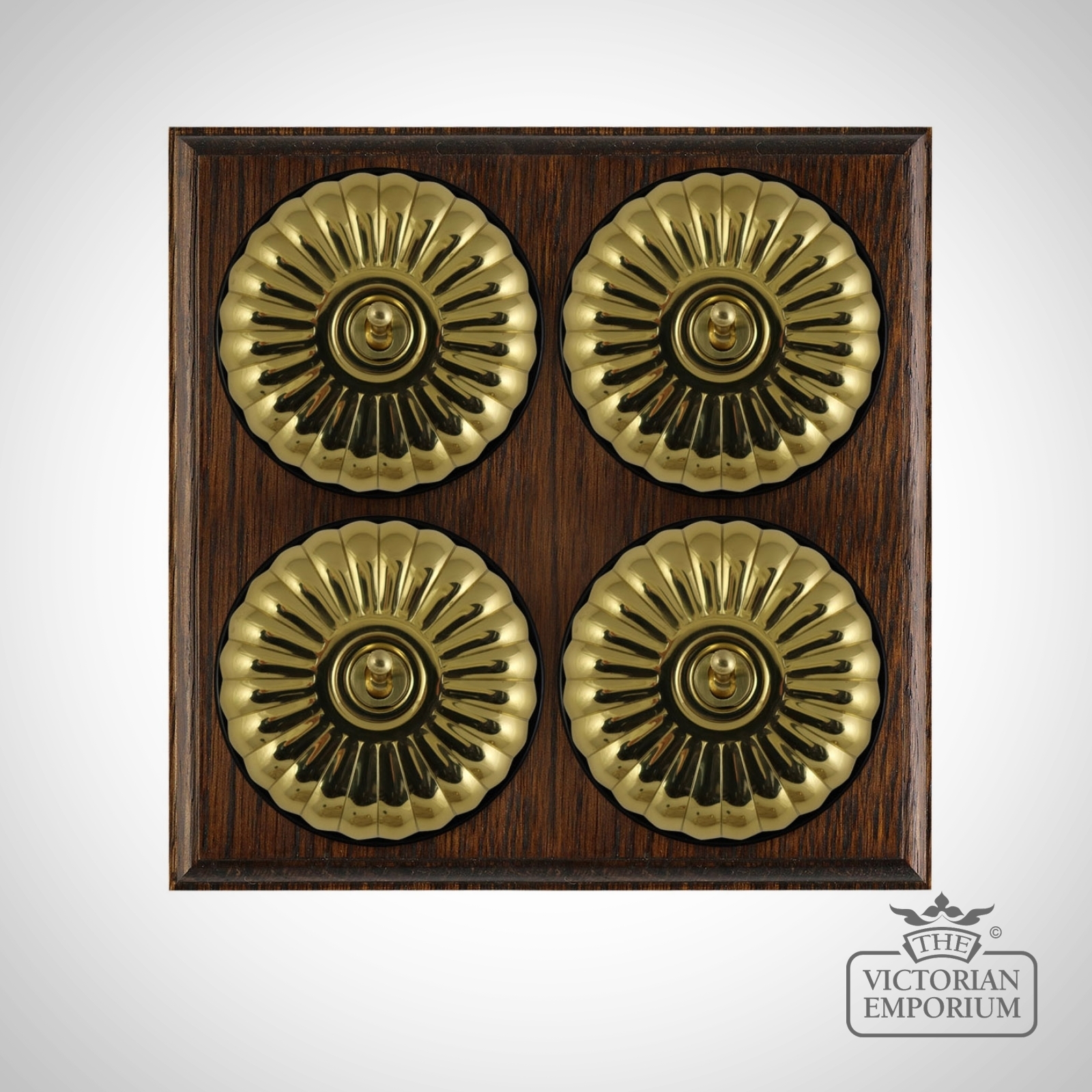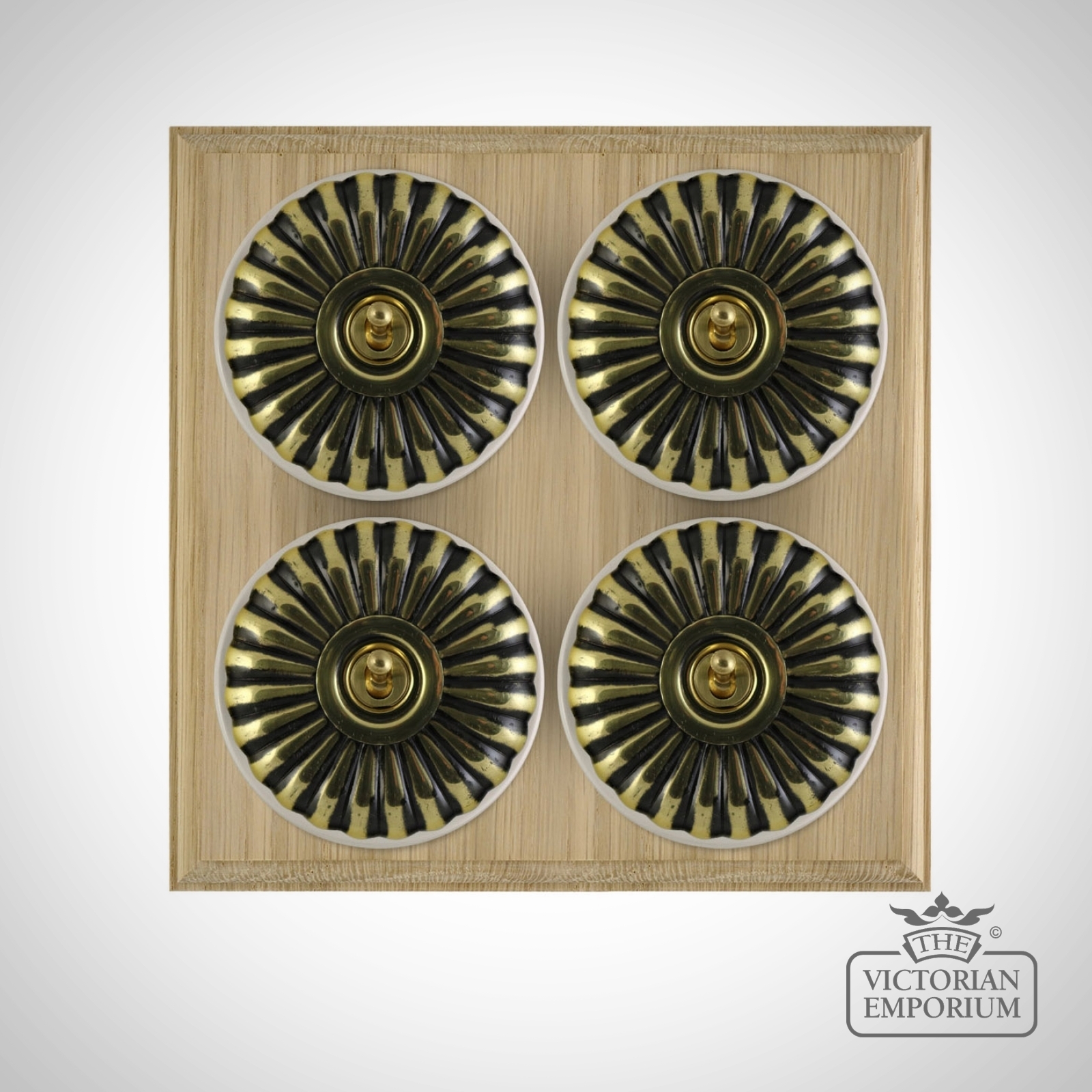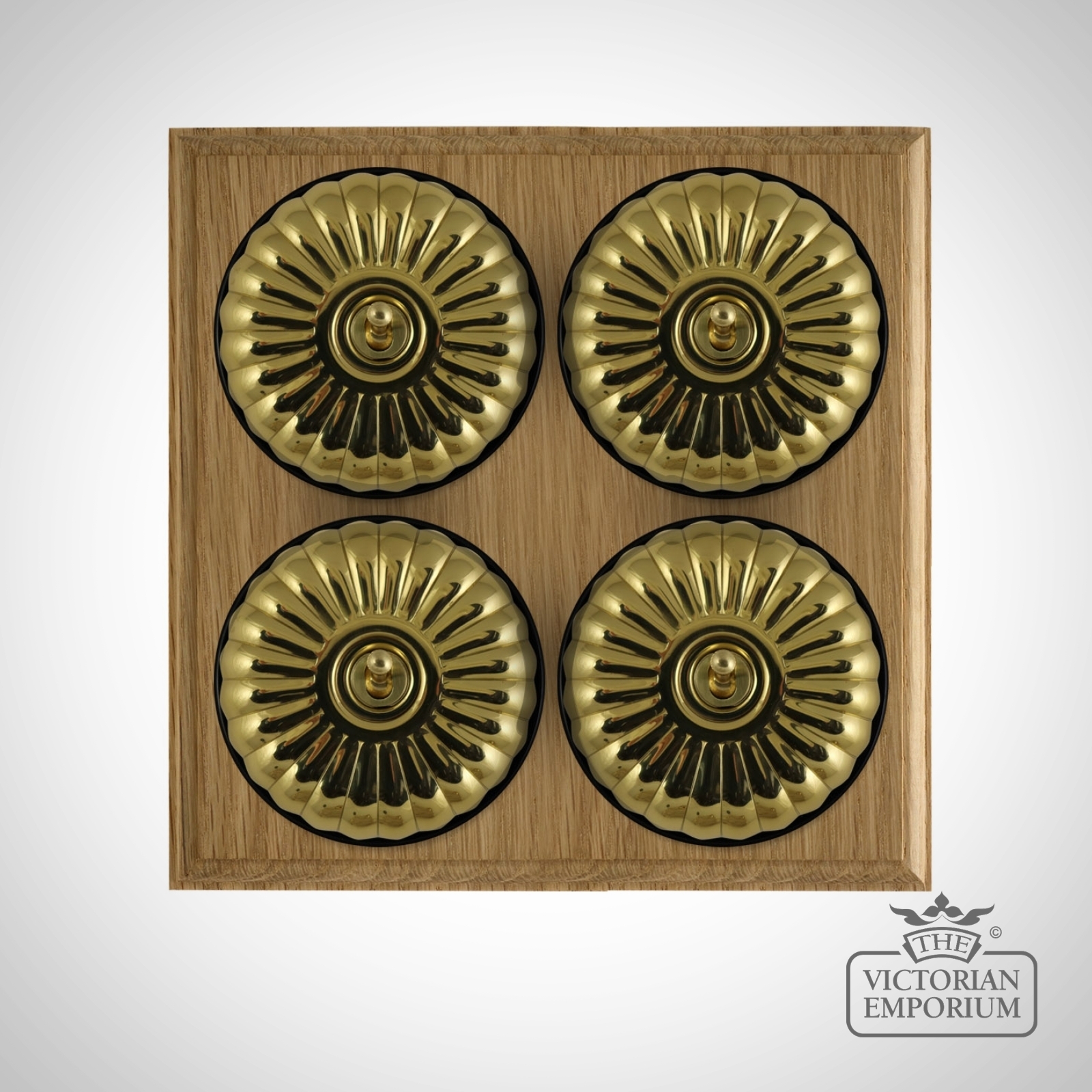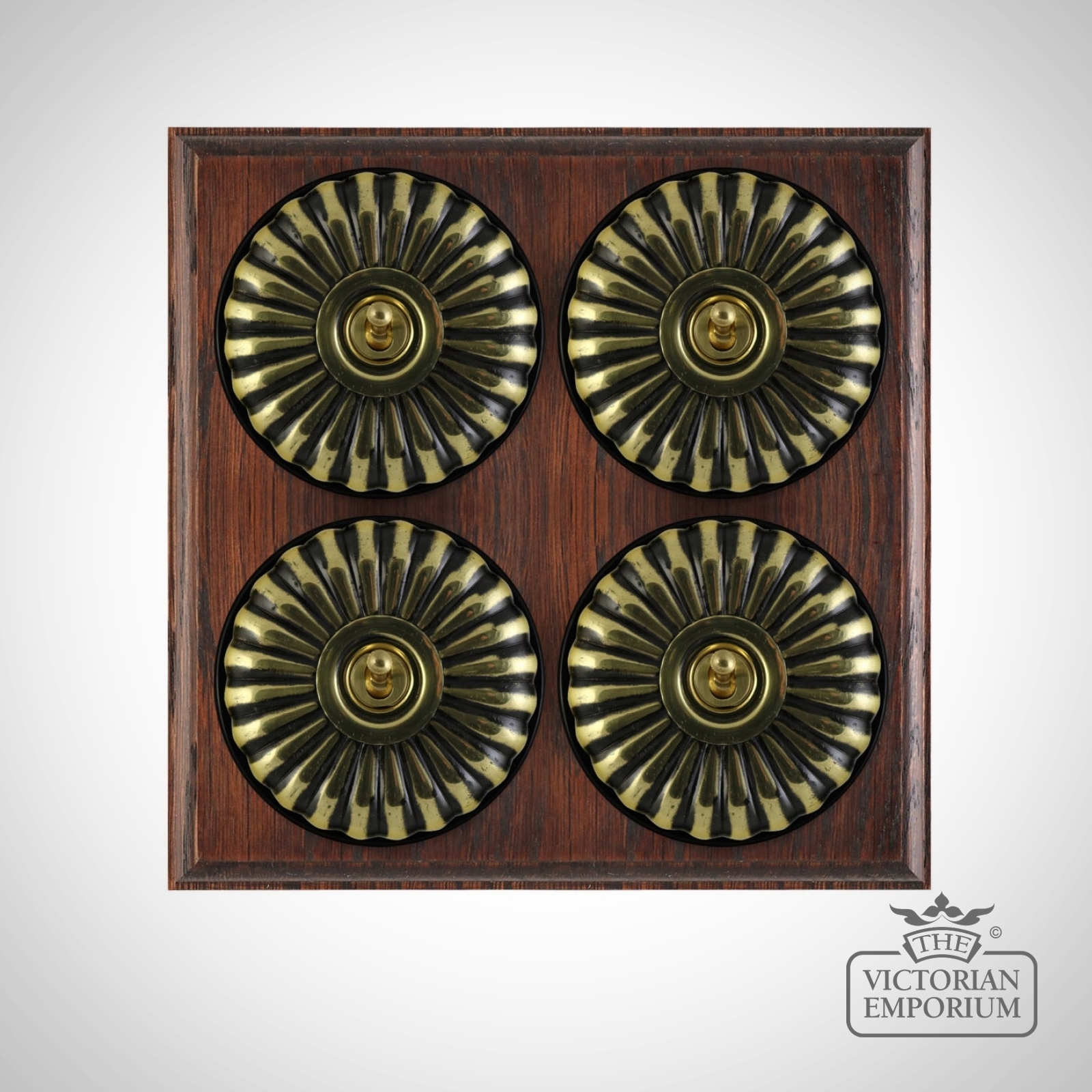 4 Gang Brass Period Light Switch - fluted in a choice of finishes