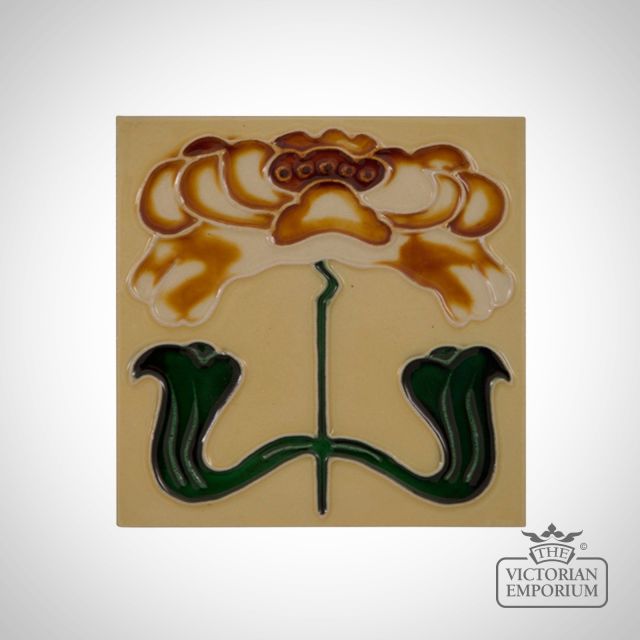 Art Deco Hand Painted Fireplace tiles featuring a large multicoloured flower on a beige background