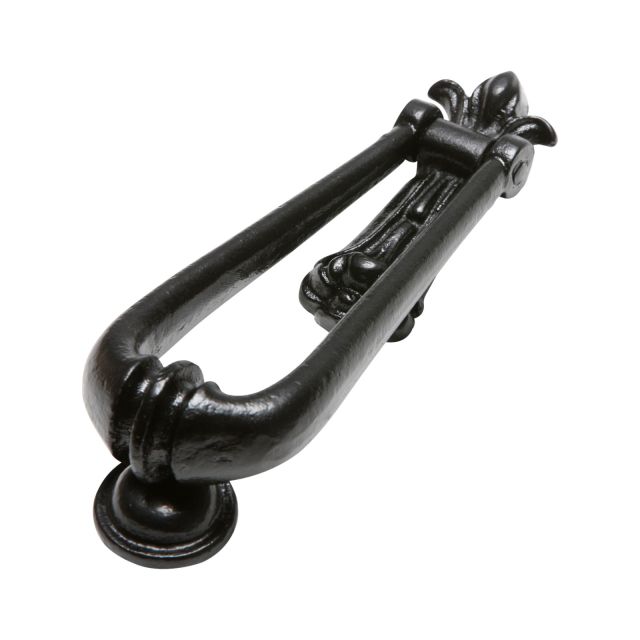 Handcrafted black iron loop-shaped door knocker, a traditional and durable choice to add period charm to any front door.
