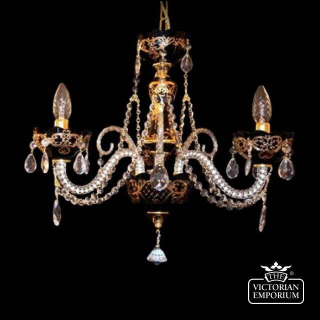 Coloured chandelier with handpainted gold detail