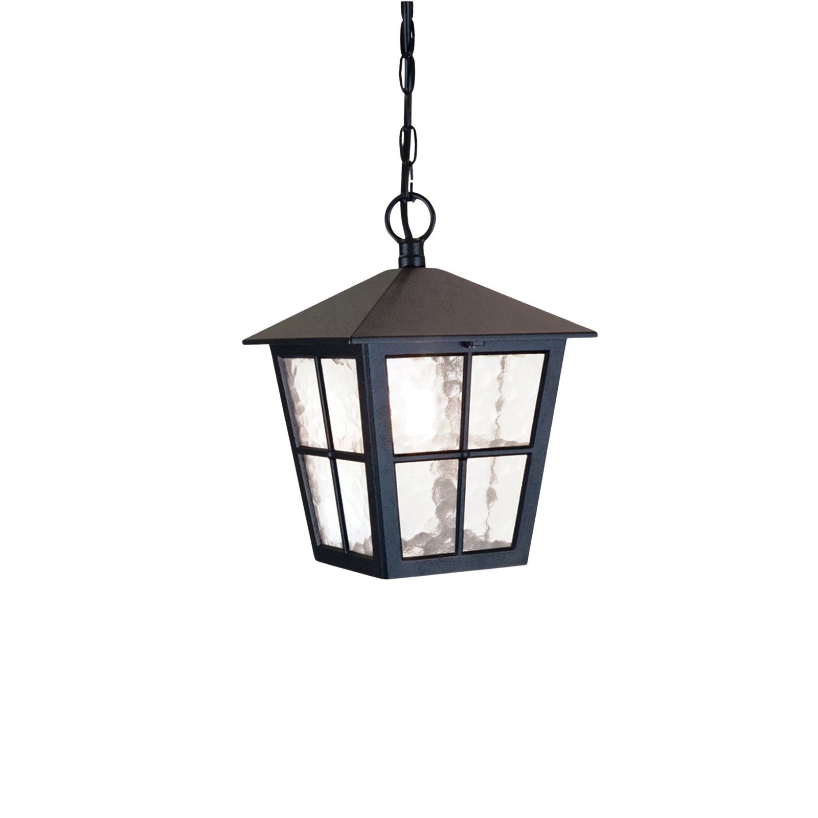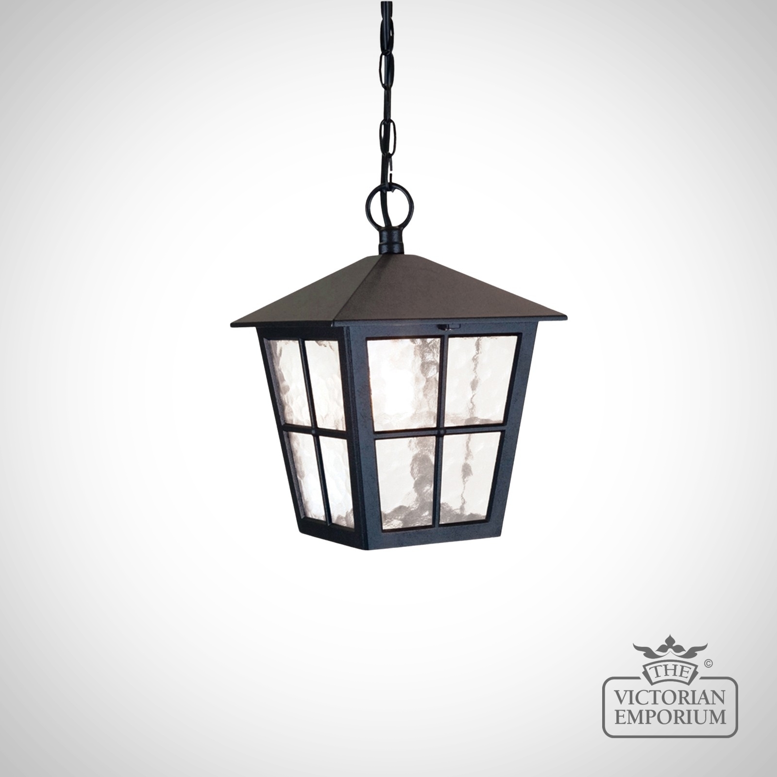 Ceiling chain lantern made from die cast aluminium with glass shade in a black finish.
