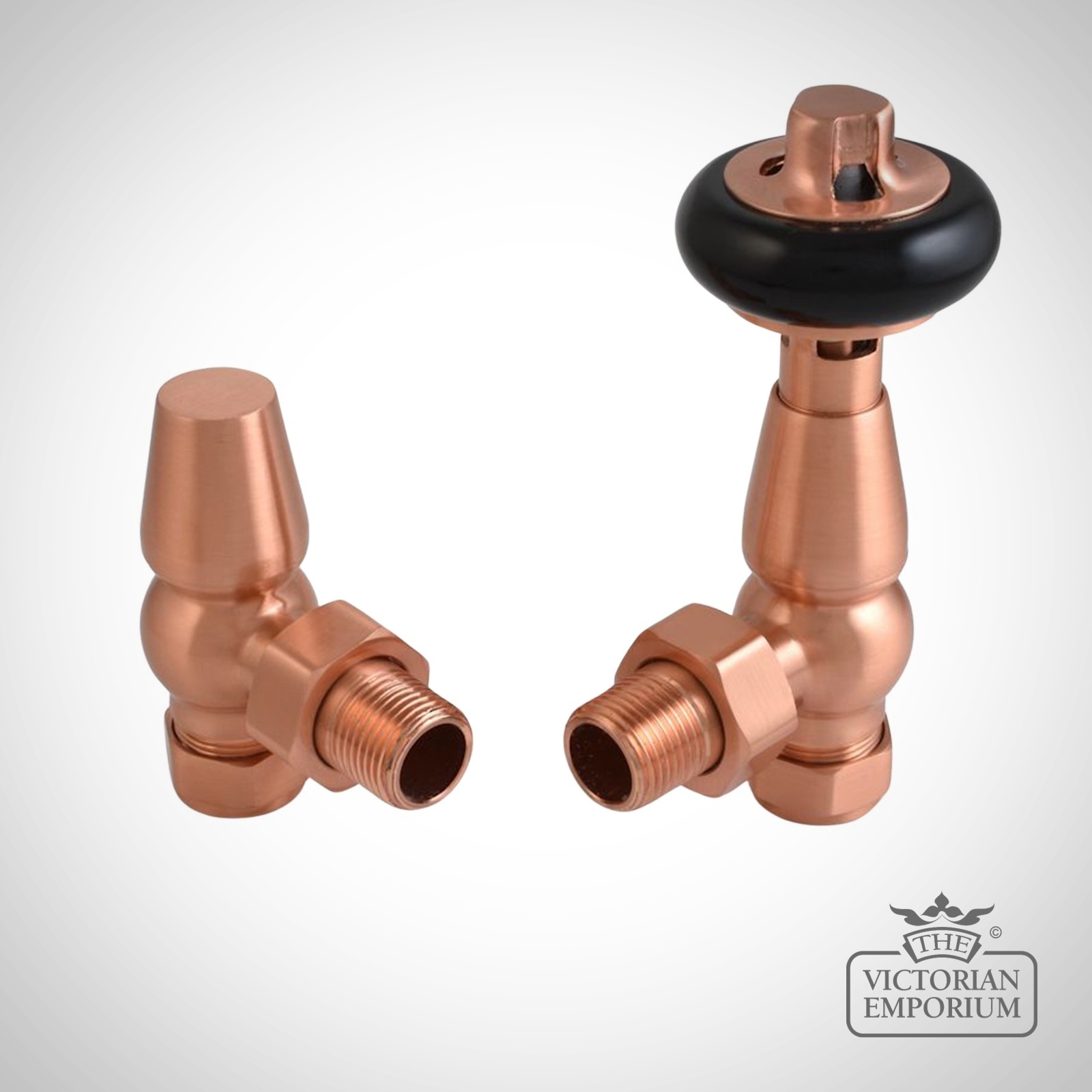 Farringdon Angled Thermostatic or Manual Radiator valve in a choice of finishes