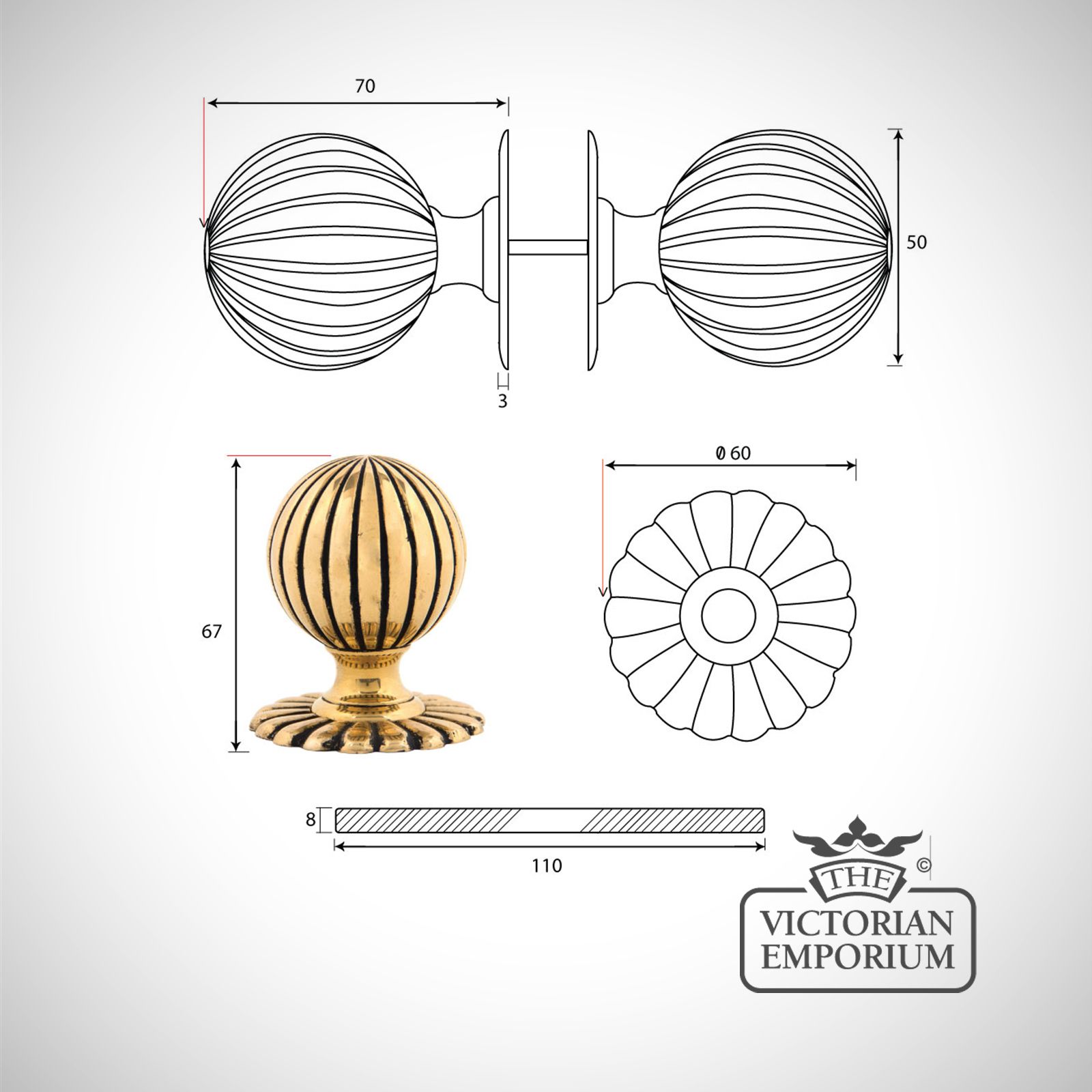 Knob Size: 3" x 2 1/4" (76mm x 57mm)