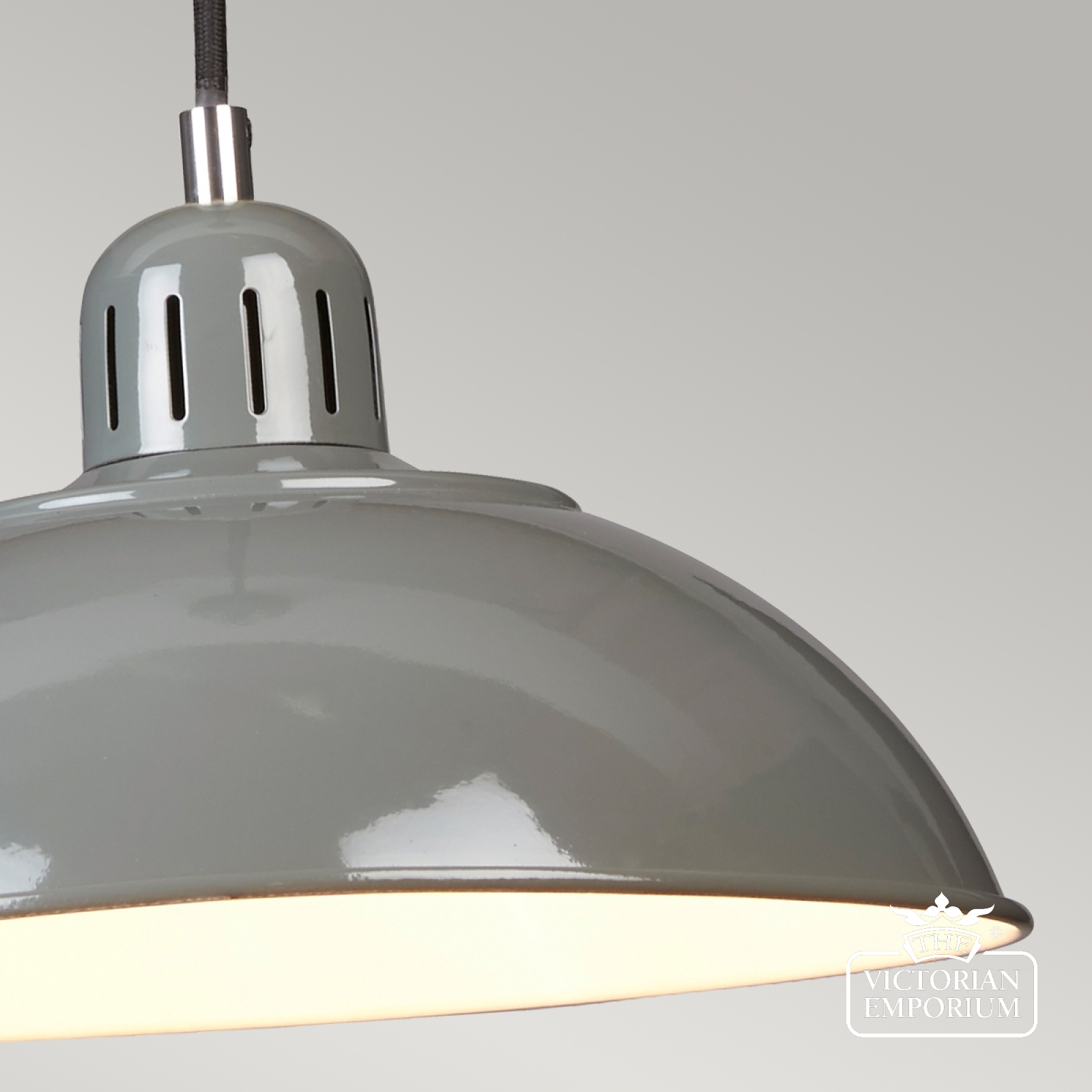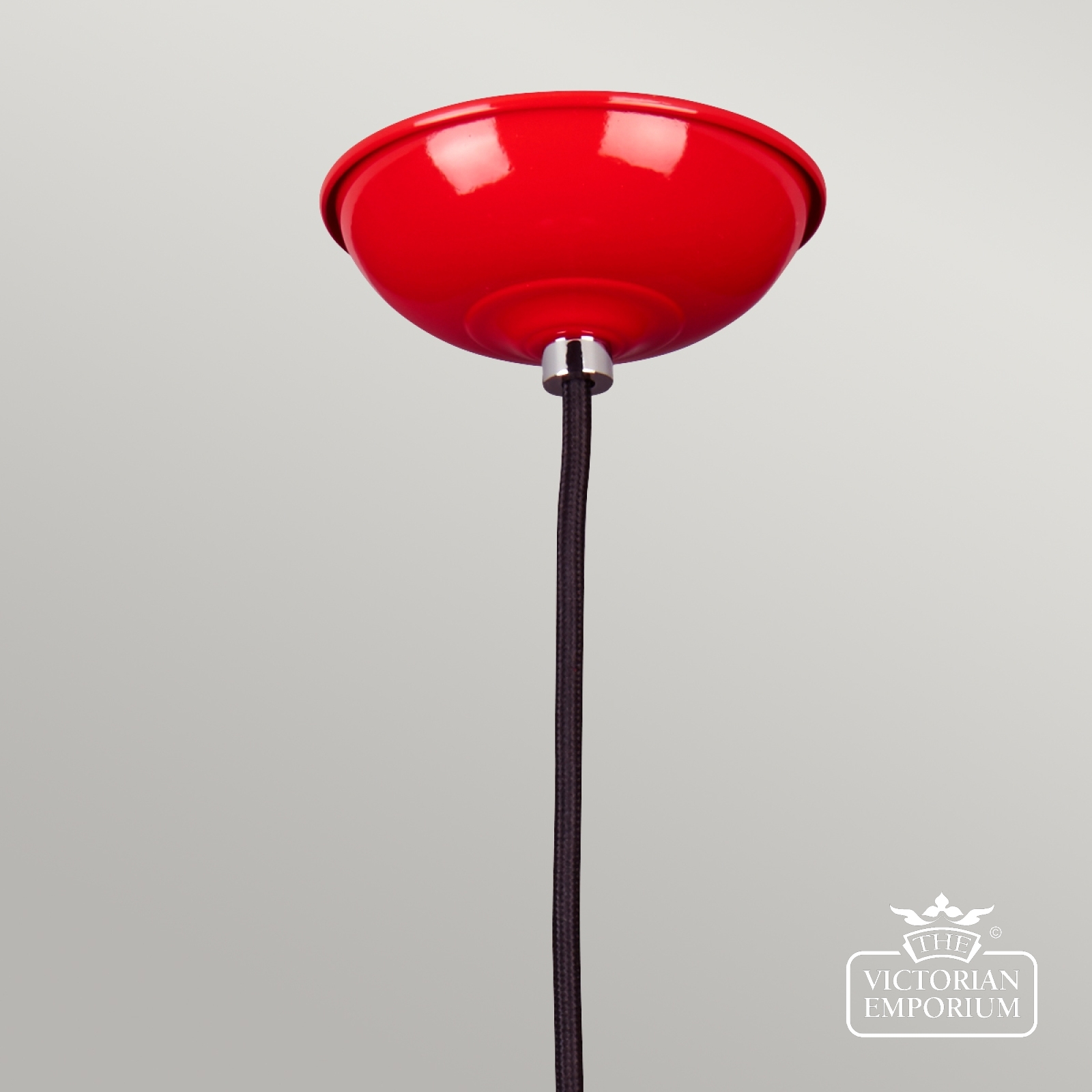 This is a retro diner pendant suspended from a black flex cord in a choice of 4 colours - grey, cream, red and green