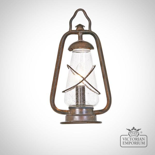 These lights are hand made in heavy wrought iron and hand finished in an old bronze finish. They are hot zinc dipped before painting to give rust protection which is guaranteed for two years.