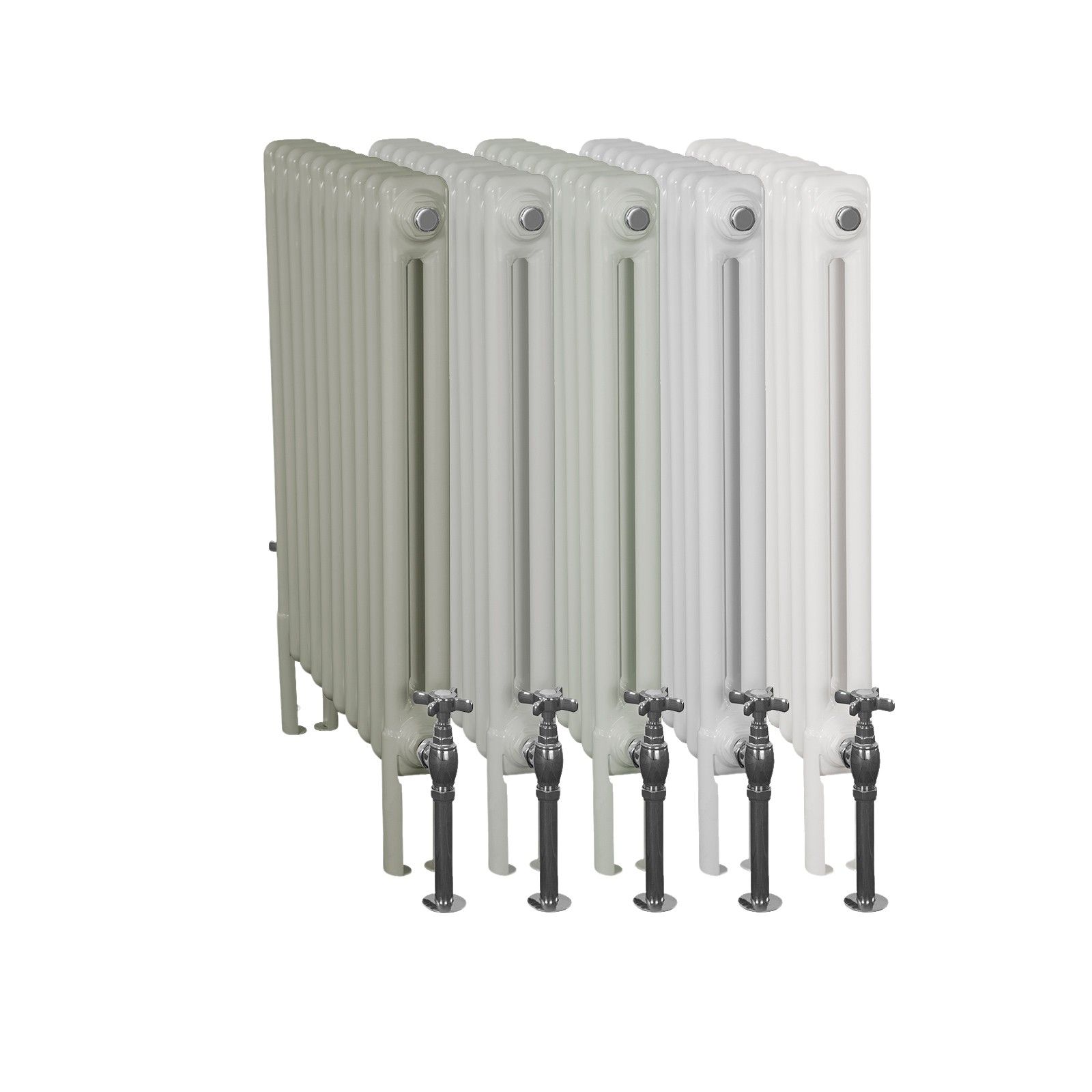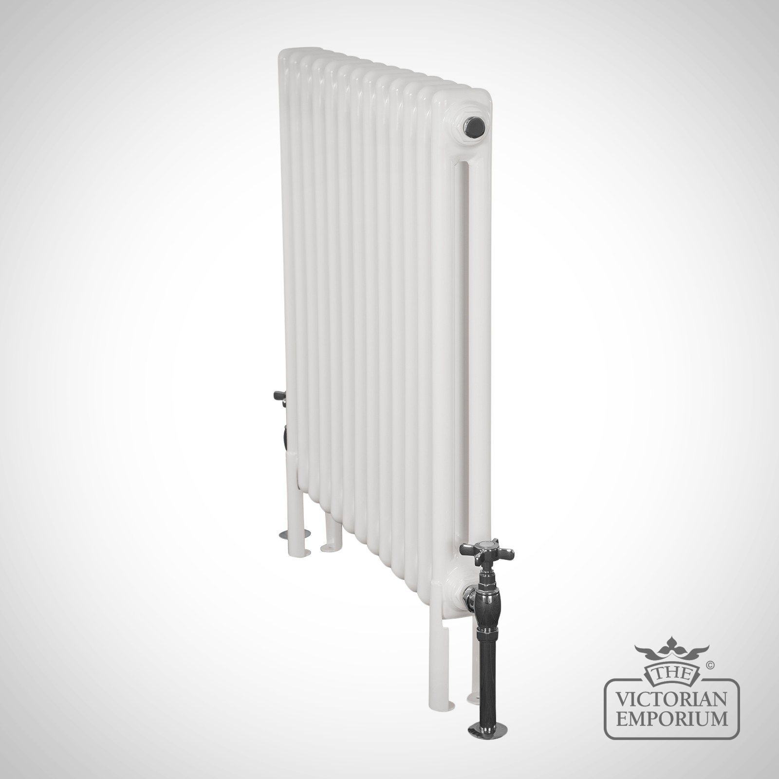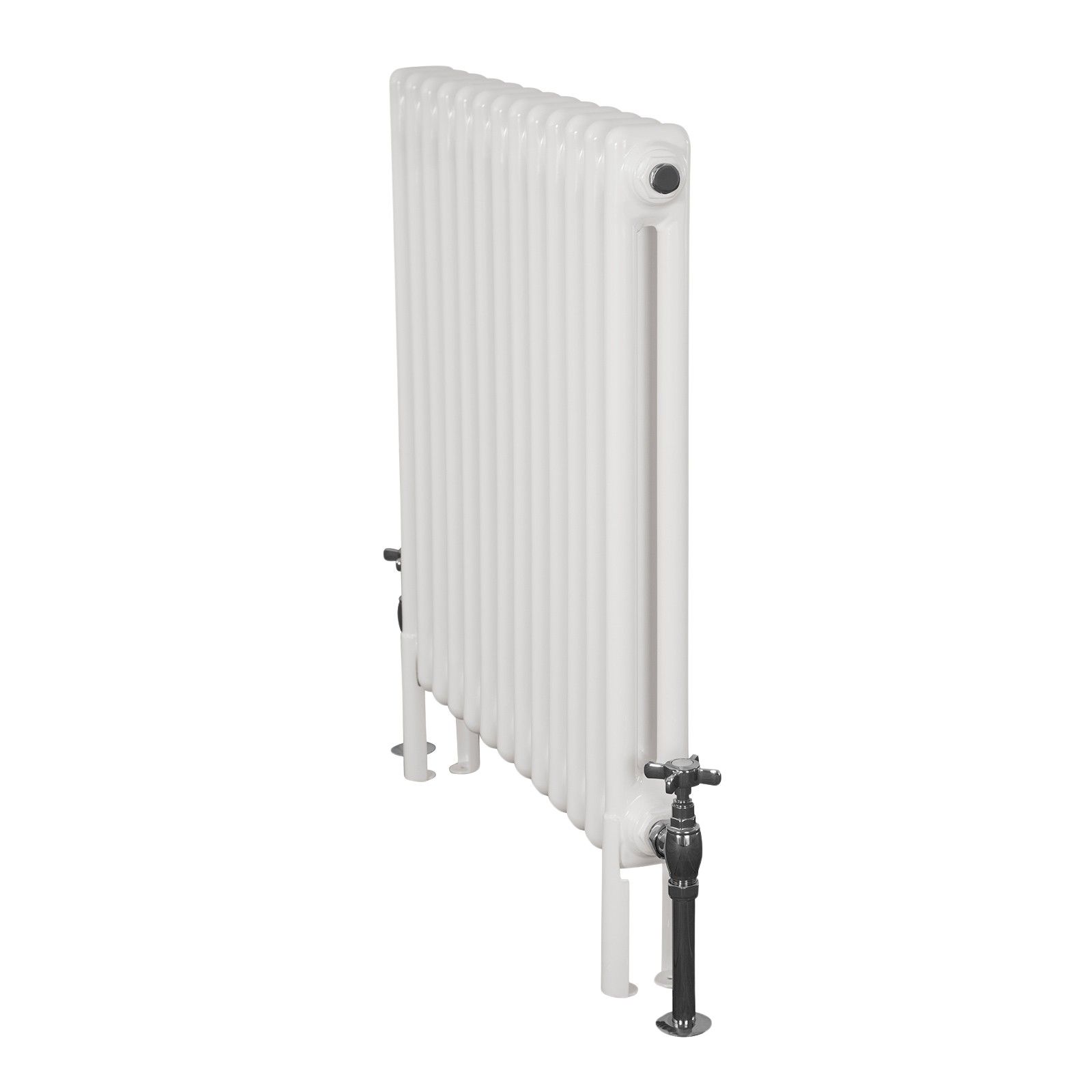 Plain white column radiator on feet - 710mm high, 2 column, choice of widths. Lead time unpainted is 2 days or up to 4 weeks if painted. Heat output given at ΔT 60°