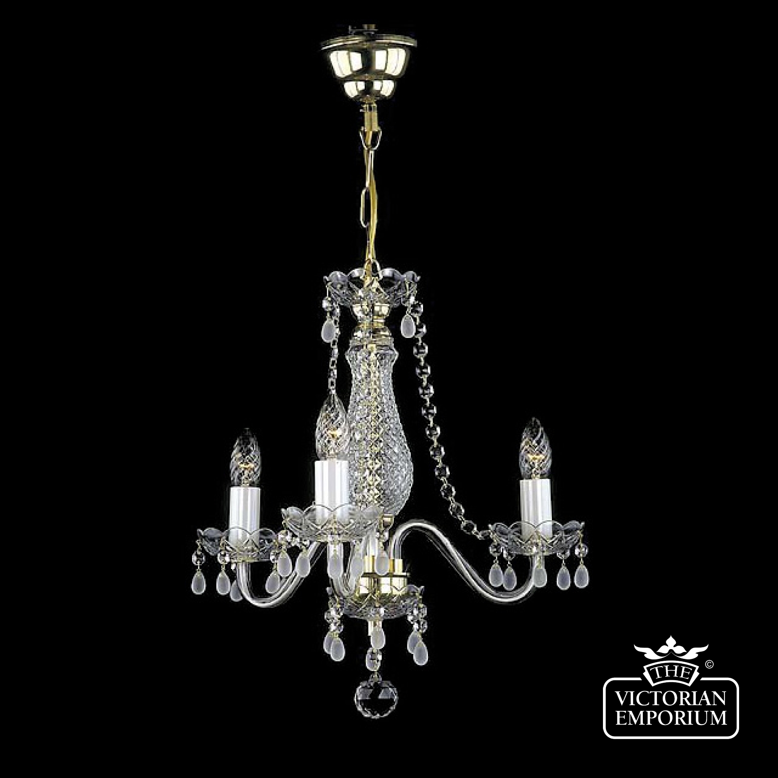 Can be produced with twisted arms and 30% PbO oval shaped crystal drops.