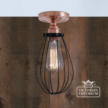 This industrial style light has been designed to showcase the warmth of Edison-style filament bulbs, and features an adjustable wire cage that can be altered easily to your own preference
