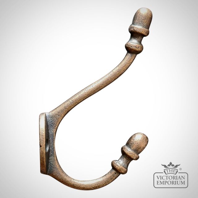 This is a really plain coat hook with an acorn shape at the top. A lovely addition to any hallway or cloakroom