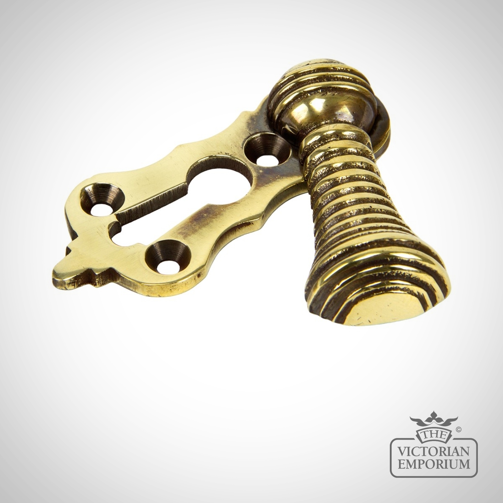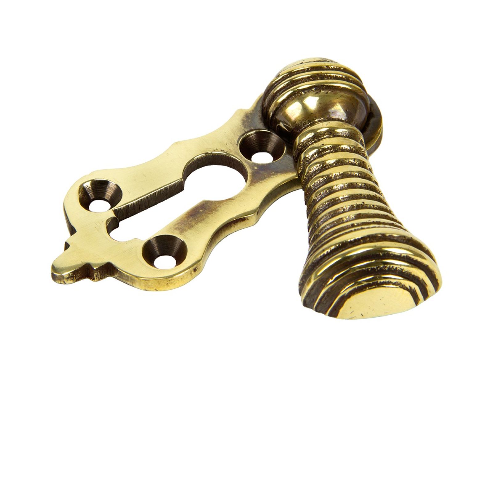 A solid, decorative beehive escutcheon plate, pre-drilled in a beautiful naturally patinaed colour of aged brass