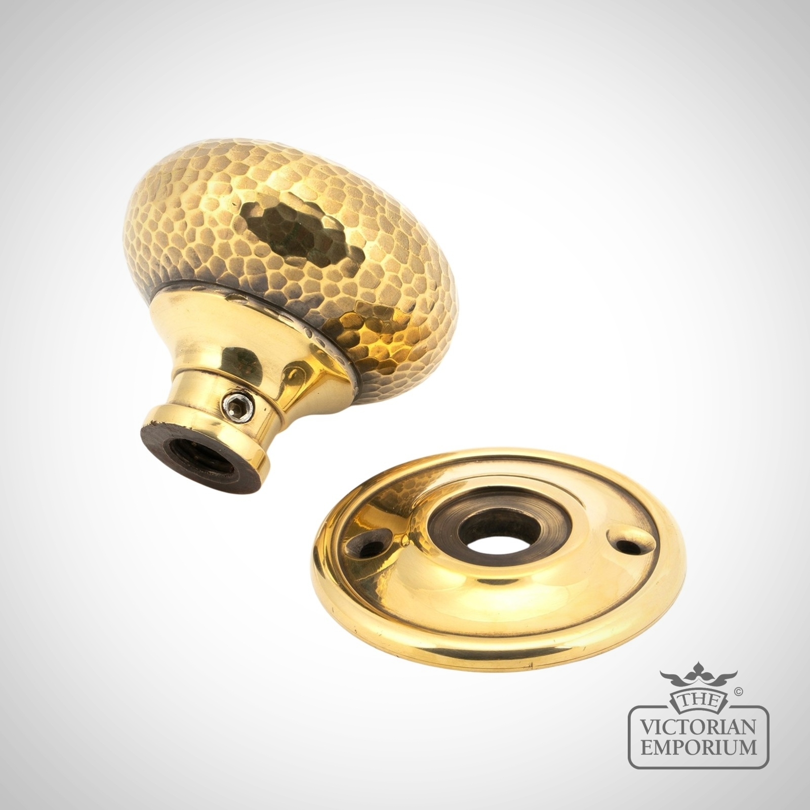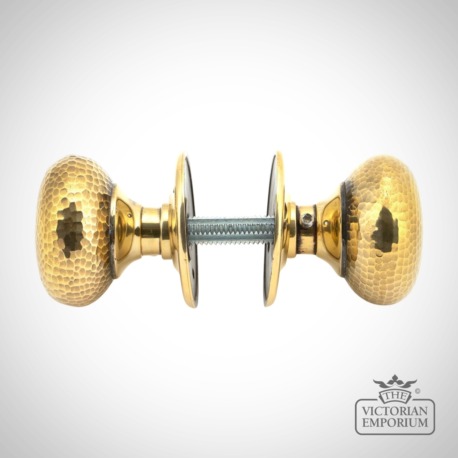 Our hammered mushroom knob set is forged from solid brass and is a perfect choice to be used with a multitude of heavy duty locks, latches & thumbturns for various applications within the home.