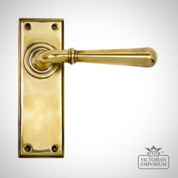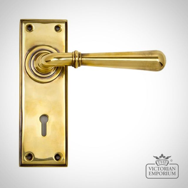Aged Brass Newbury Lever Lock or Latch or Bathroom Handle Set