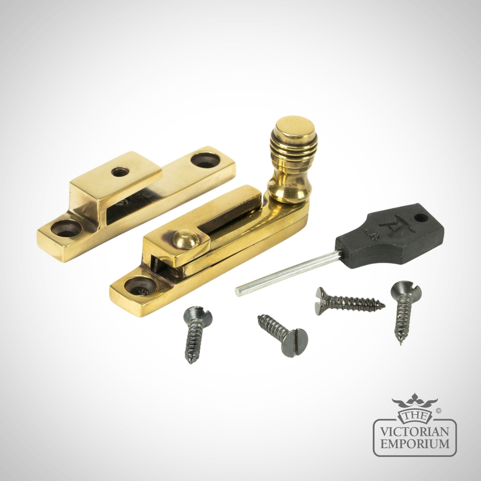 This sash furniture is designed to match the Pressbury door and cabinet furniture in the range. A stylish quadrant fastener used to secure a sash window.
