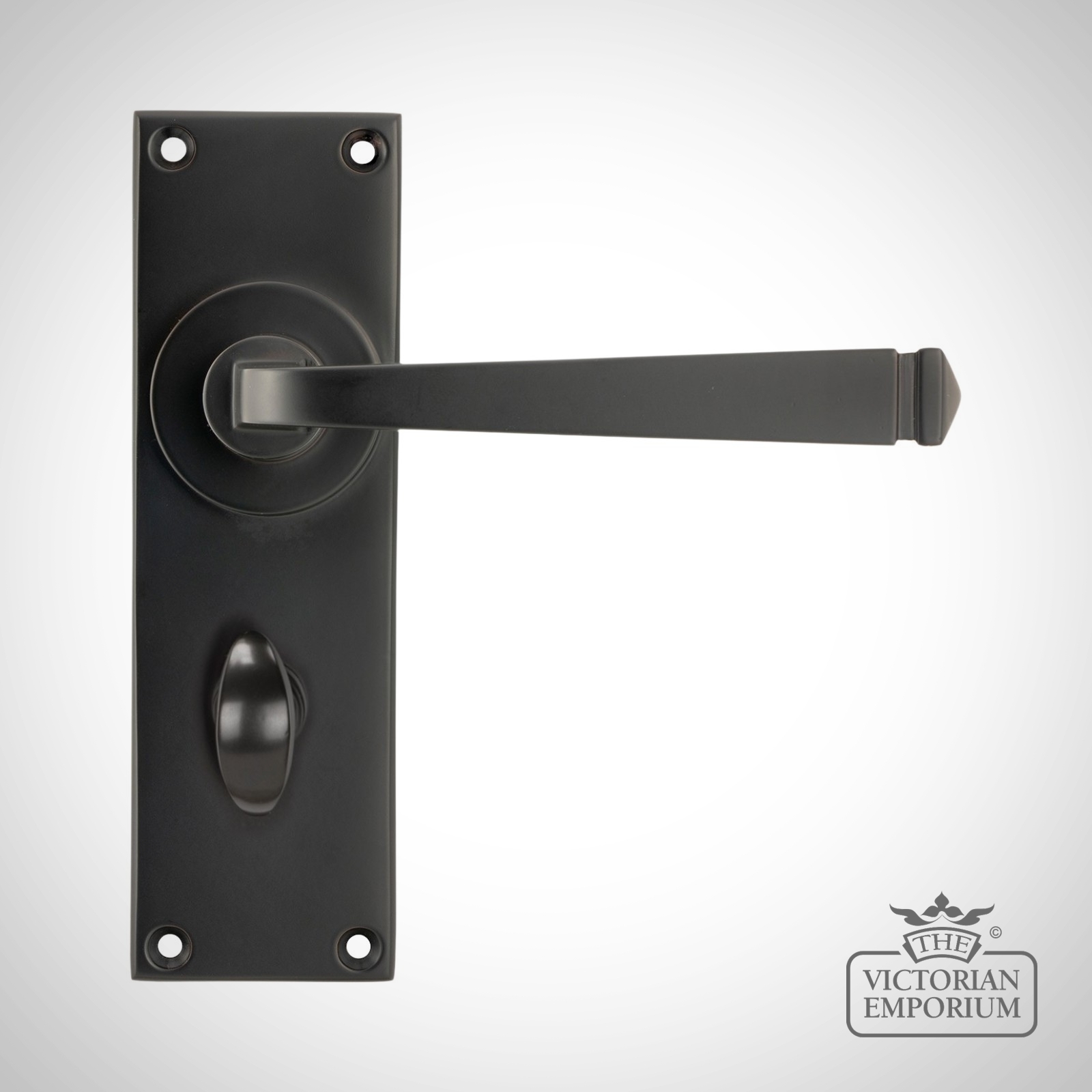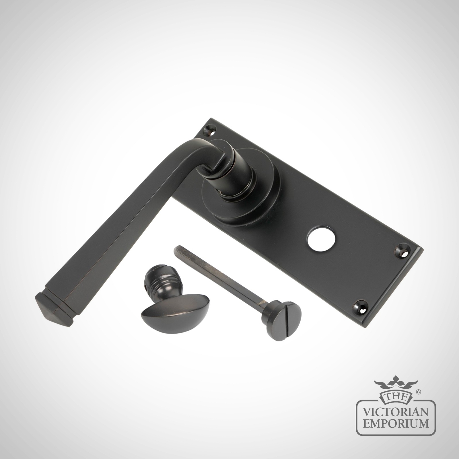 These aged bronze lever handles for bathrooms are popular for their simplicity with a strong spring incorporated. Ideal for bathroom doors where you require a locking mechanism.