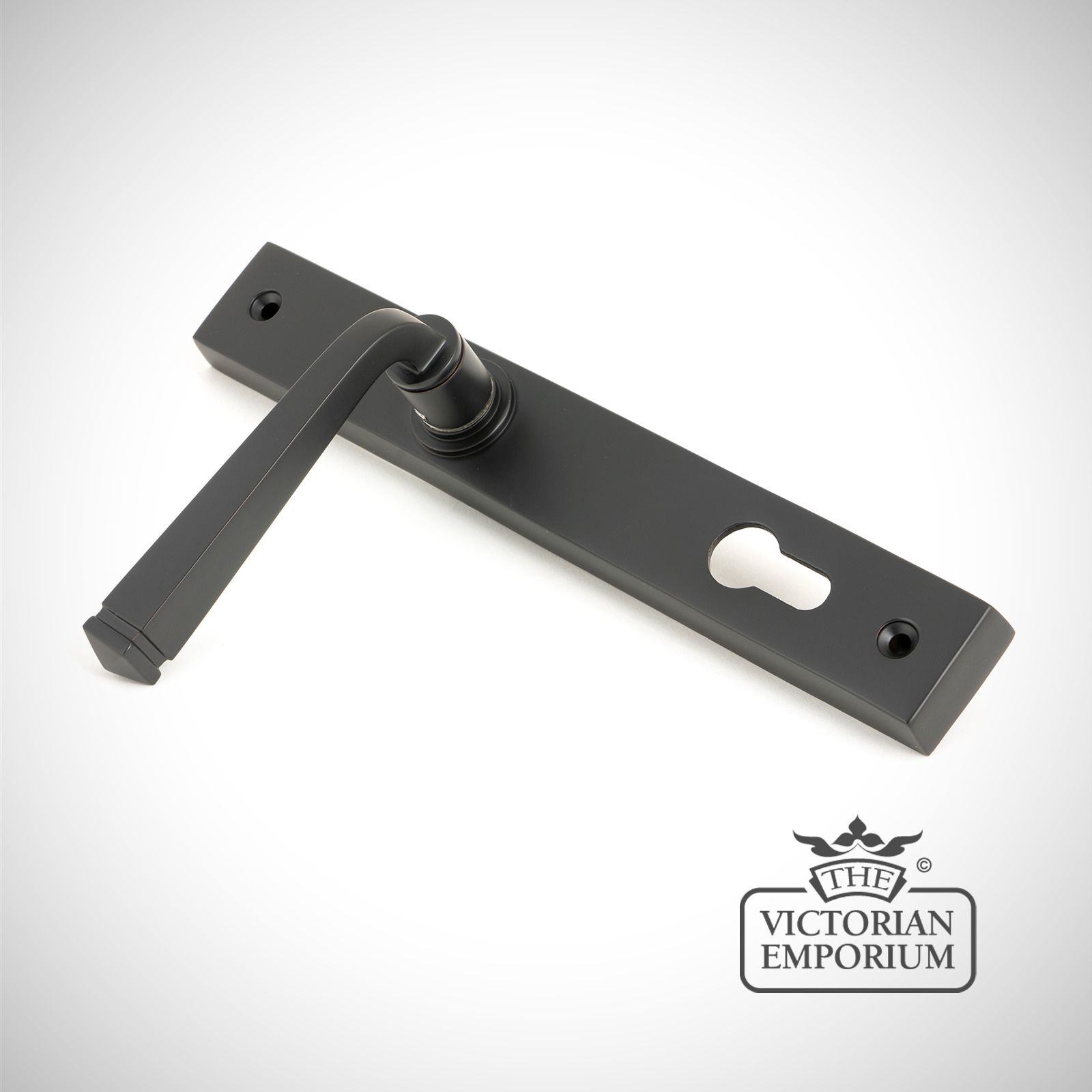 These lever handles are popular for their simplicity with a strong double spring incorporated. Ideal for external doors where multi-point locking is required.