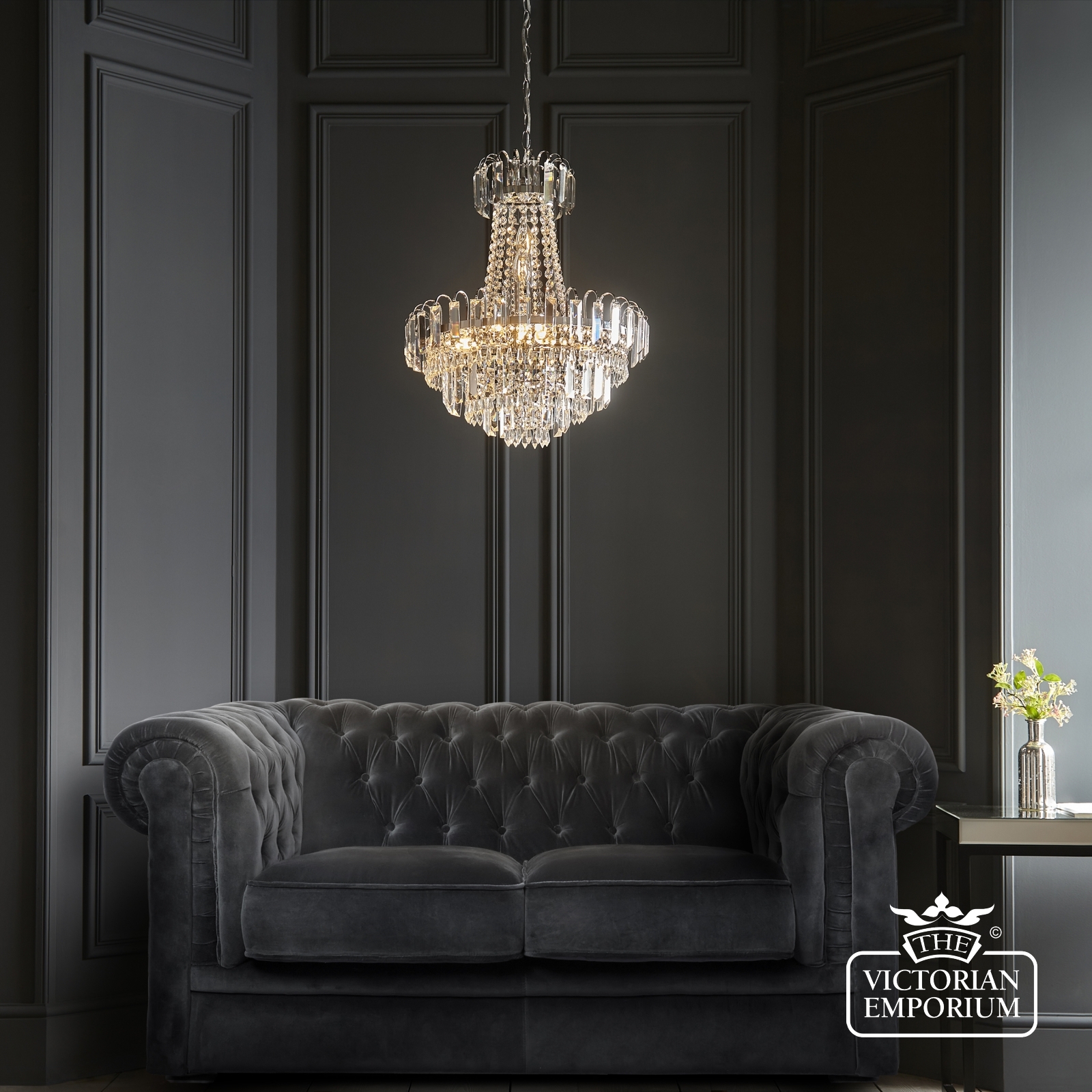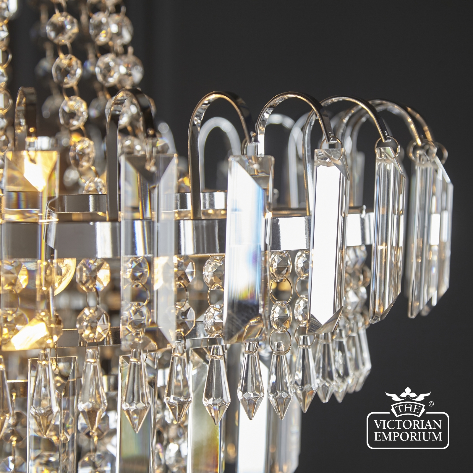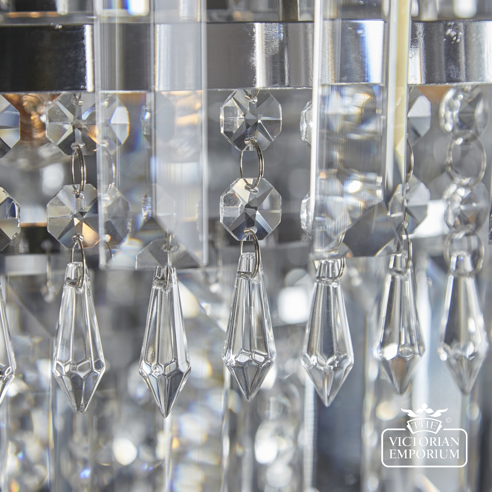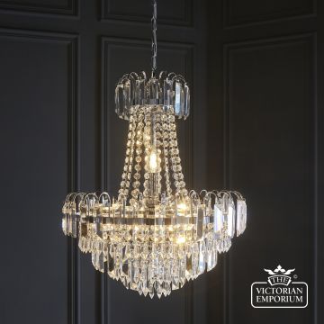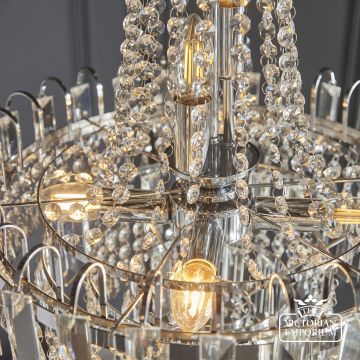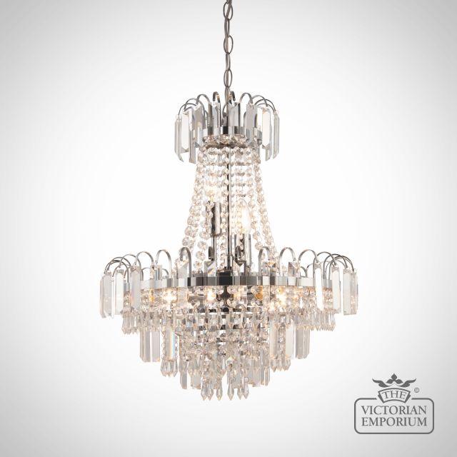 A stunning mix of faceted clear glass and polished chrome creates a stunning centre piece to complement any room. It’s height adjustable so suitable for high and medium height ceilings