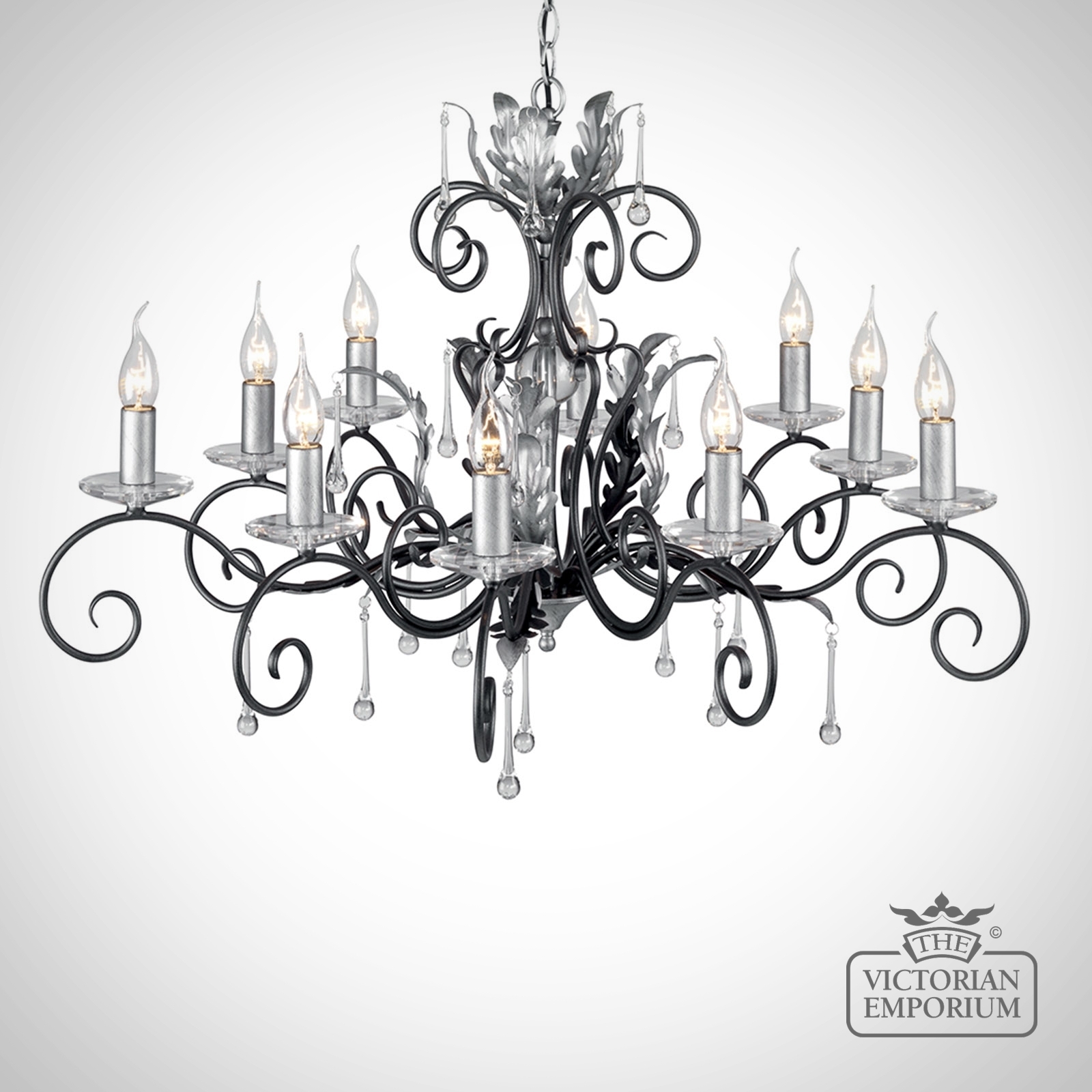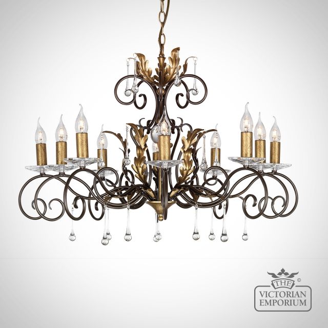Amarrilli 10 light large chandelier in or dark gold/bronze or silver