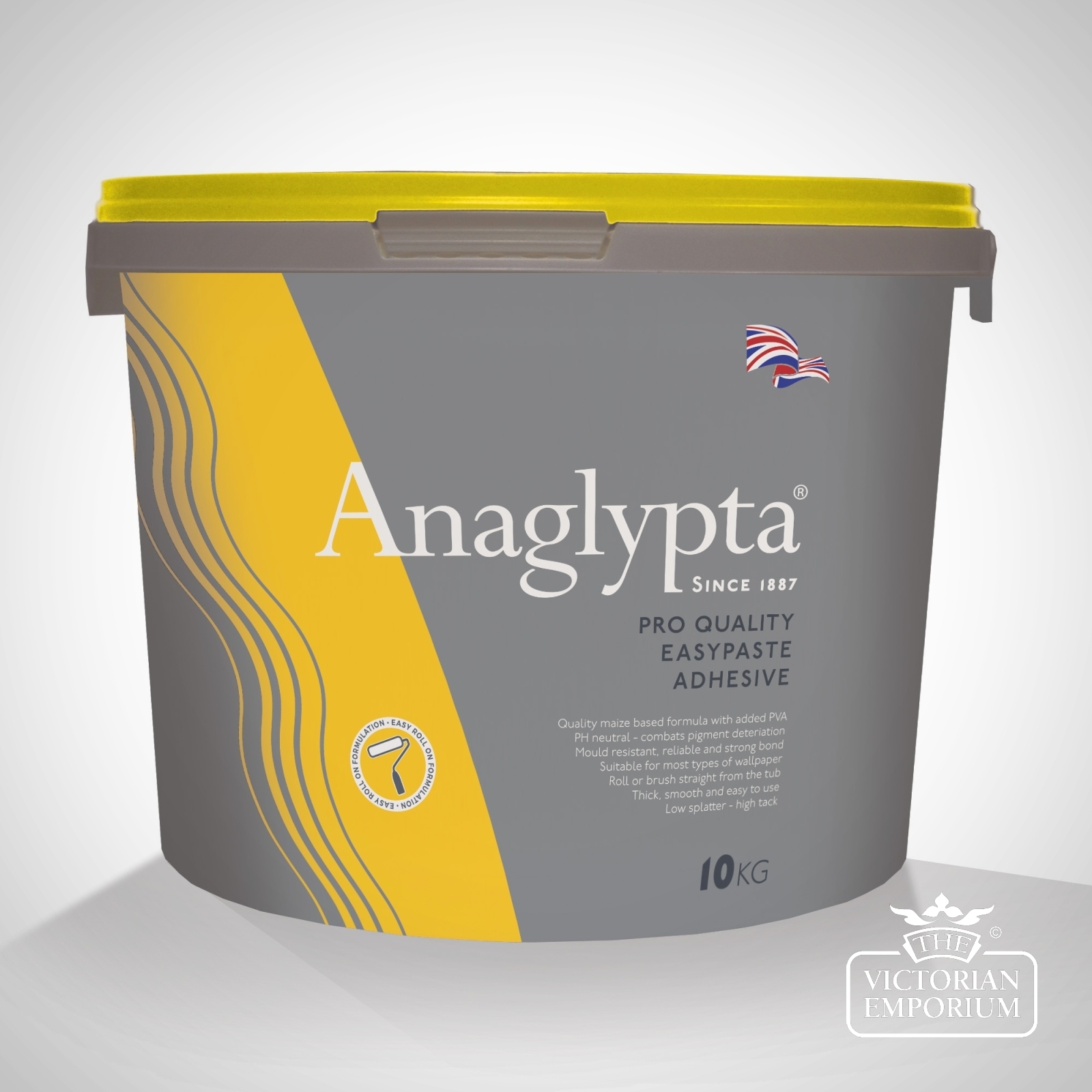 Anaglypta ReadyMix is a high performance, ready-to-use wallcovering adhesive designed to be used directly from the tub. High performance aqueous paste based on a blend of natural starches.