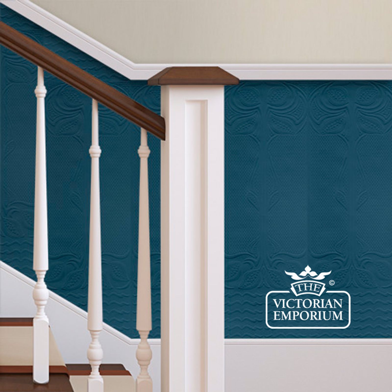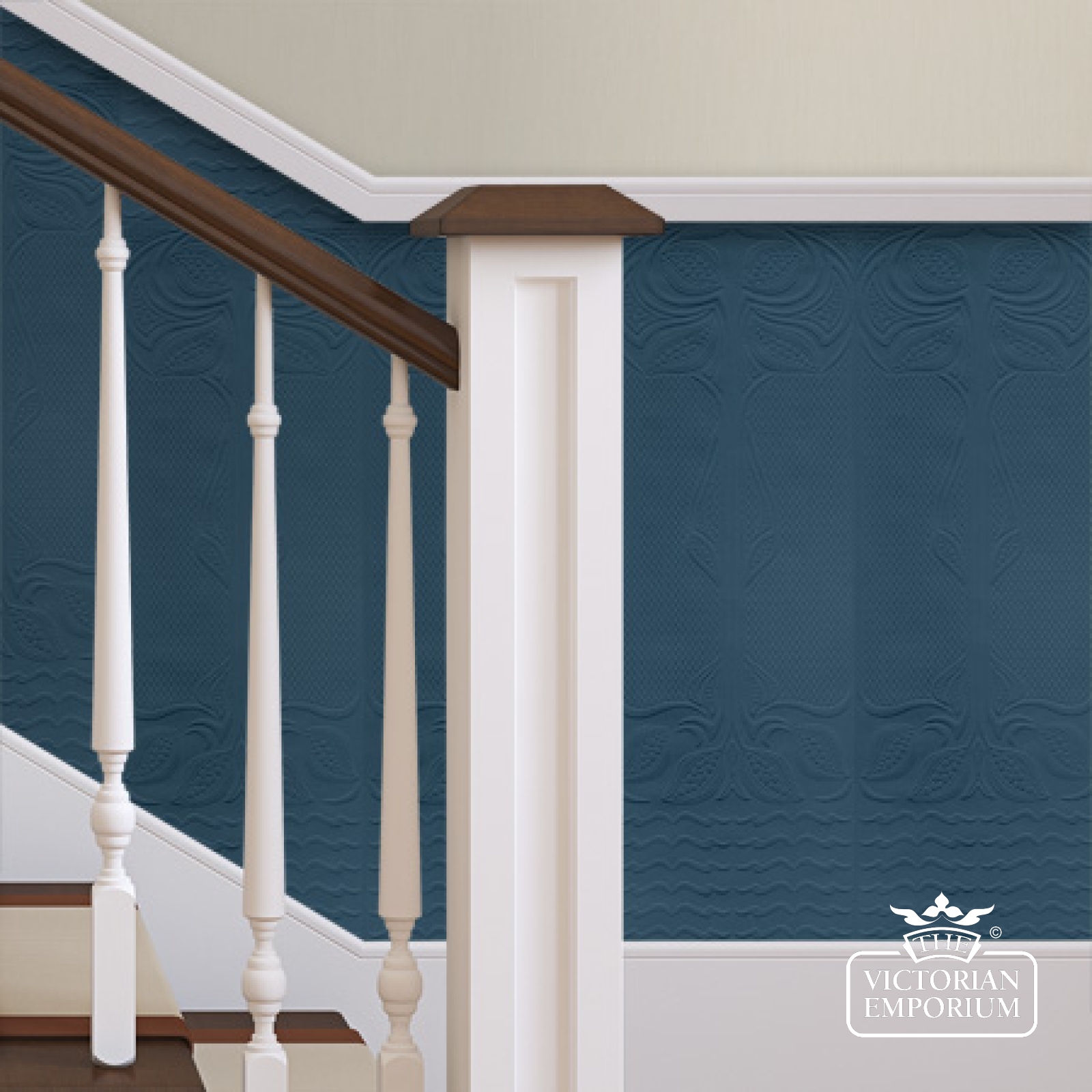 Recreated from a 'Gothic' dado panel design, this panel allows the wallpaper to be hung on the stairs with a beautiful textural effect.