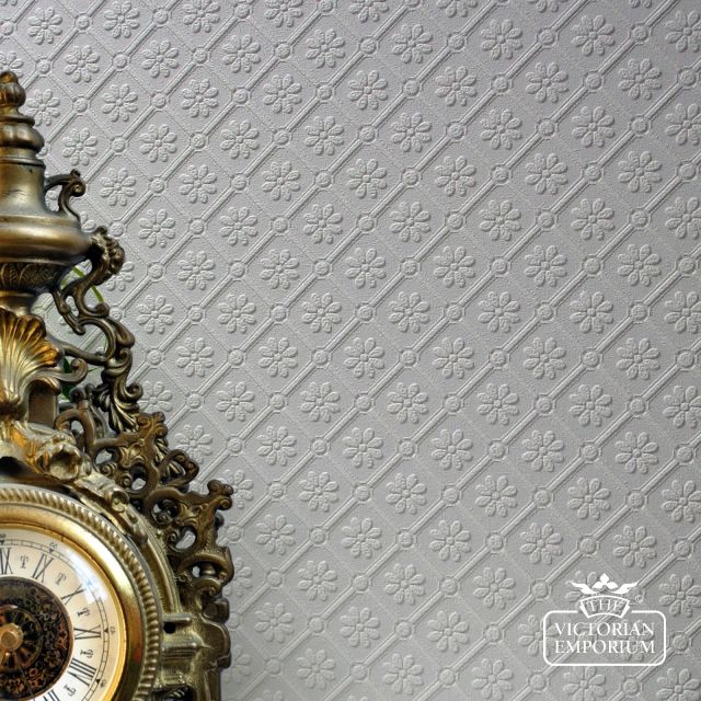 This anaglypta paintable wallpaper incorprates a beautiful relief of continuous small flower design encased in diagonal lines.