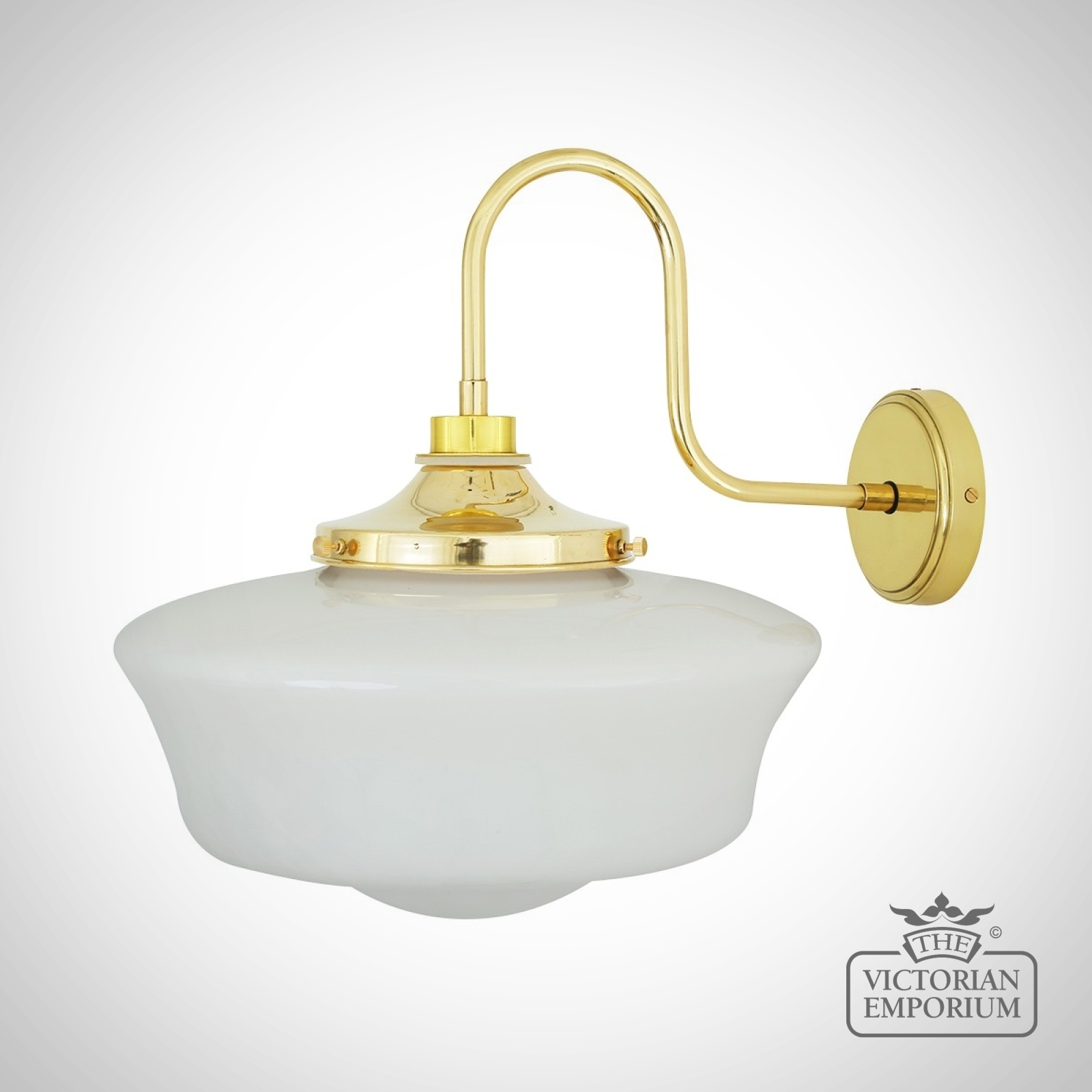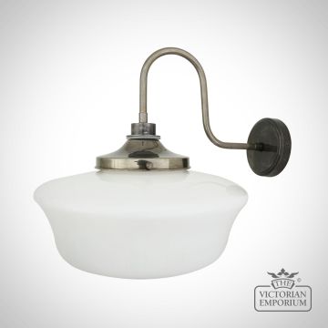 The Anath Bathroom / Outdoor Wall Light has a classic design with an elegant swan neck, and is a great choice for bathrooms, hallways or kitchens. Features a classic schoolhouse glass shade