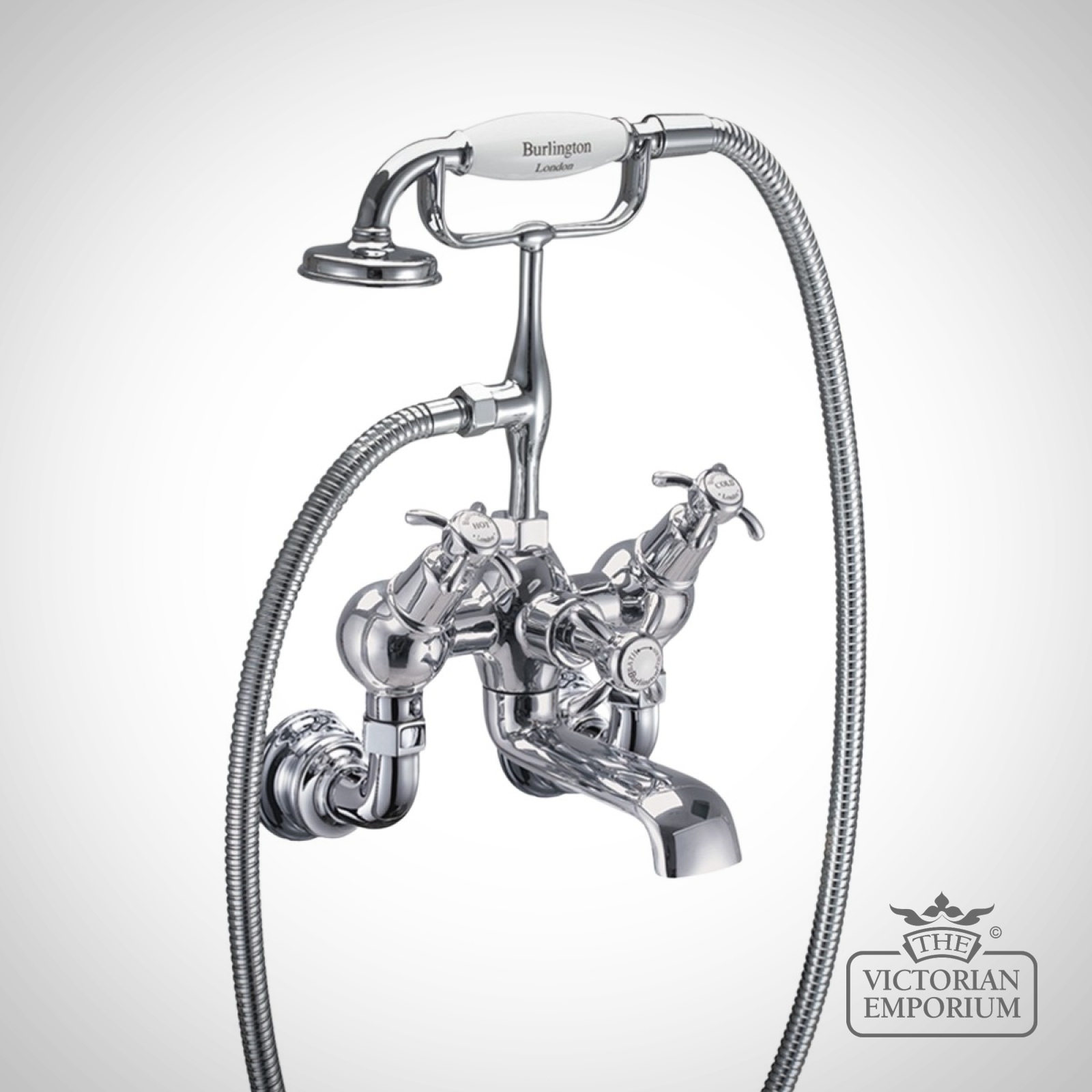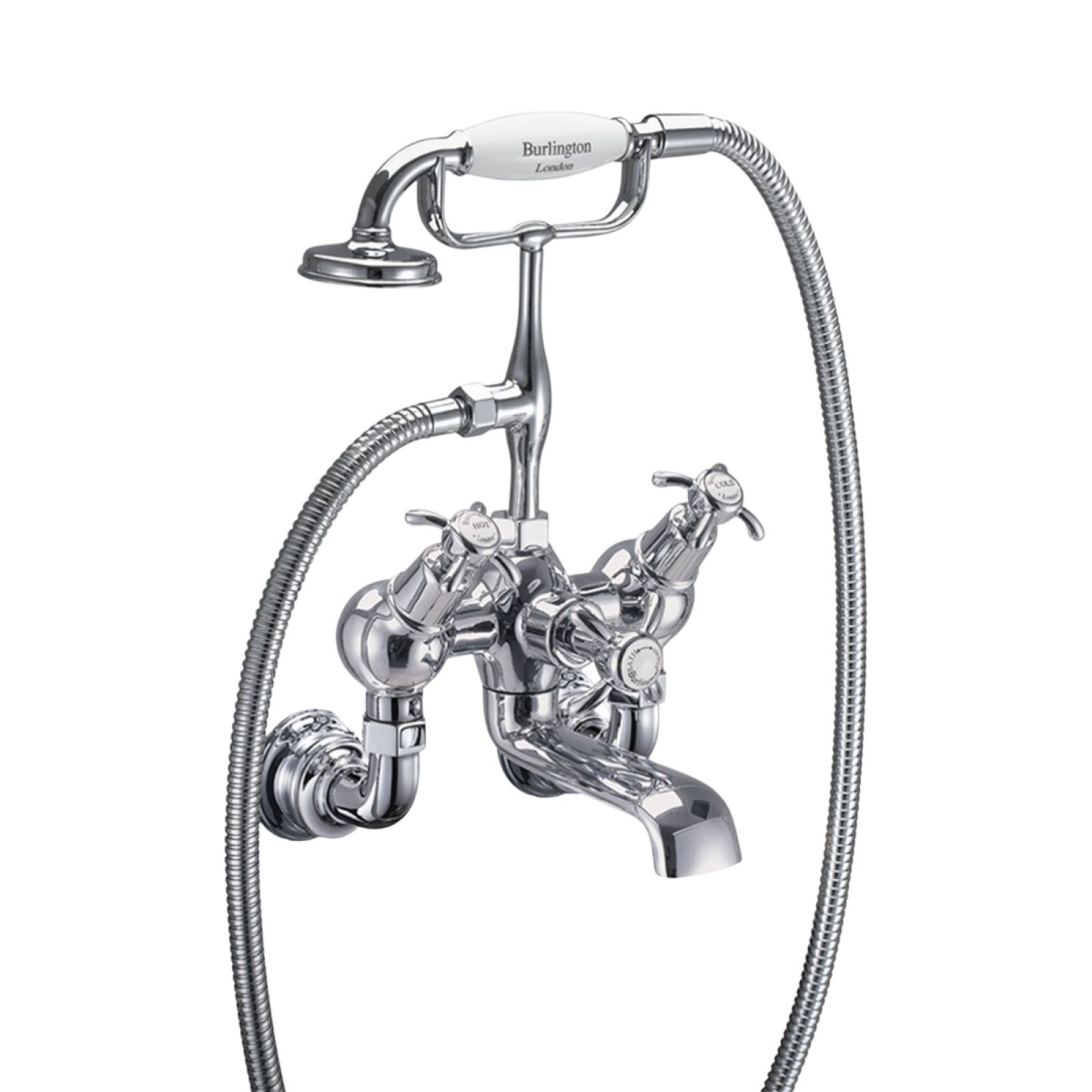 Bath shower mixer including the standard cradle, ‘S’ adjuster, ceramic diverter, hose, ceramic telephone handset, with tap heads, bases and unions