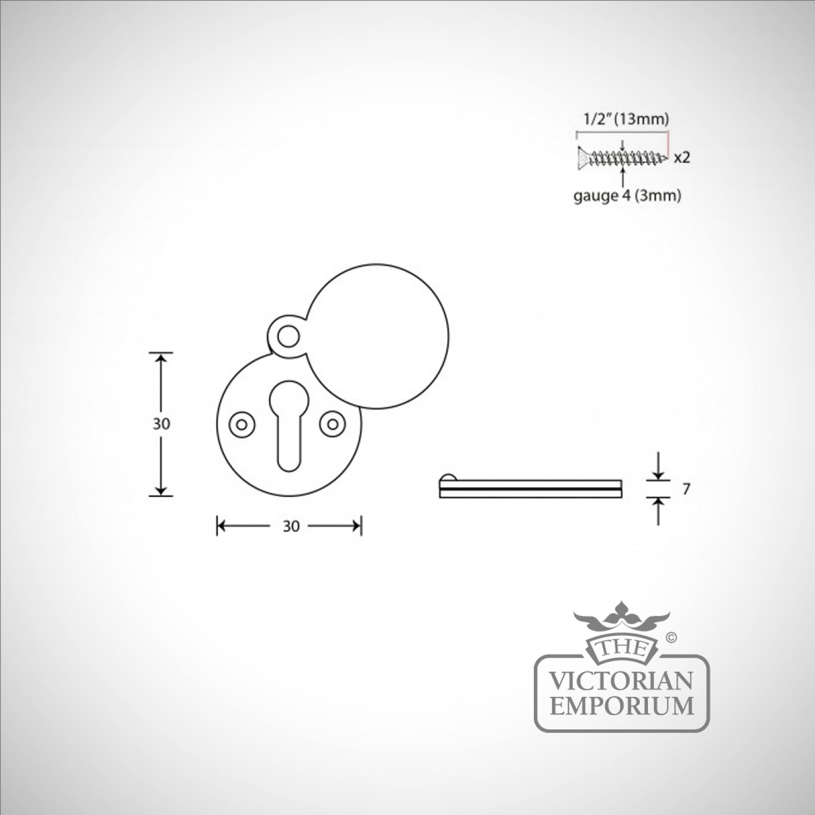 Plain Round Escutcheon in a rich dark antique brass which will naturally age over time.