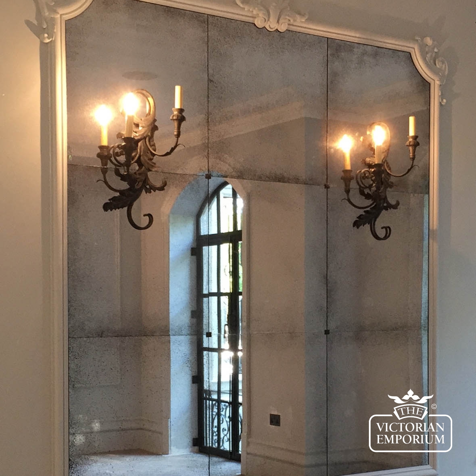 Medium Mercury is one of our mid-level styles of antiqued mirror, with a heavy intensification of dark speckles. It is designed to mimic the manner in which traditional Mercury mirror plates degrade over time; to enhance its authenticity we usually concentrate the antiquing more densely to the edges, paying specific attention to the bottom of each individual piece.