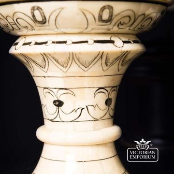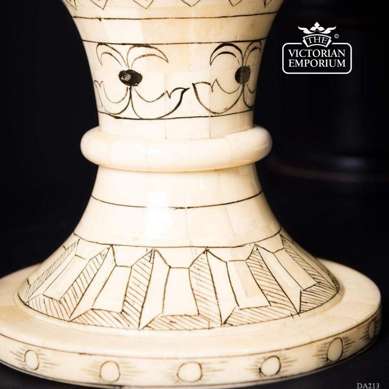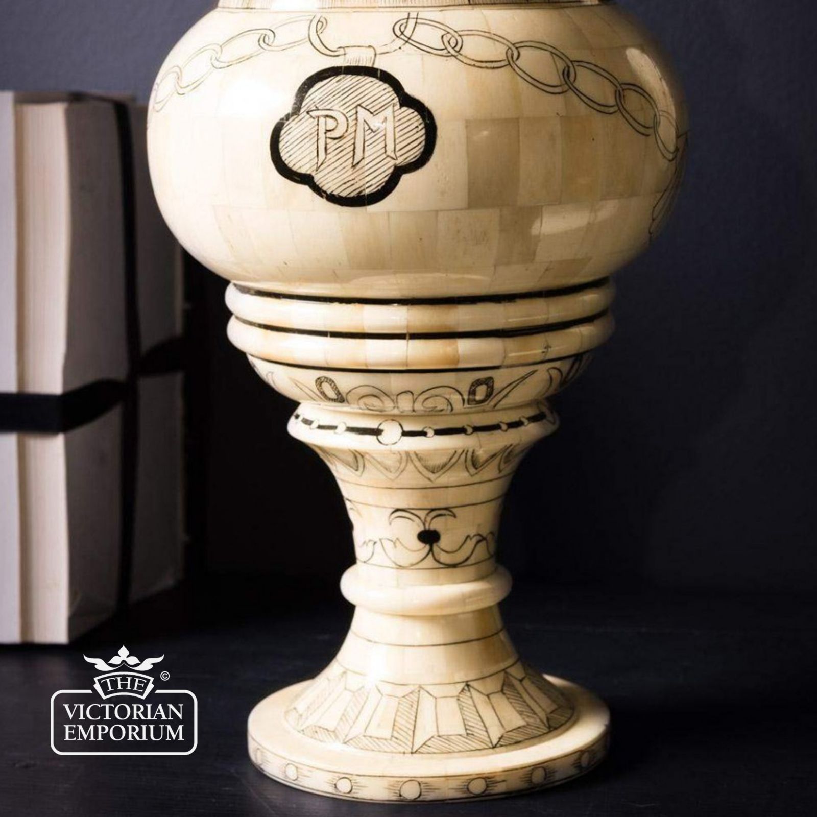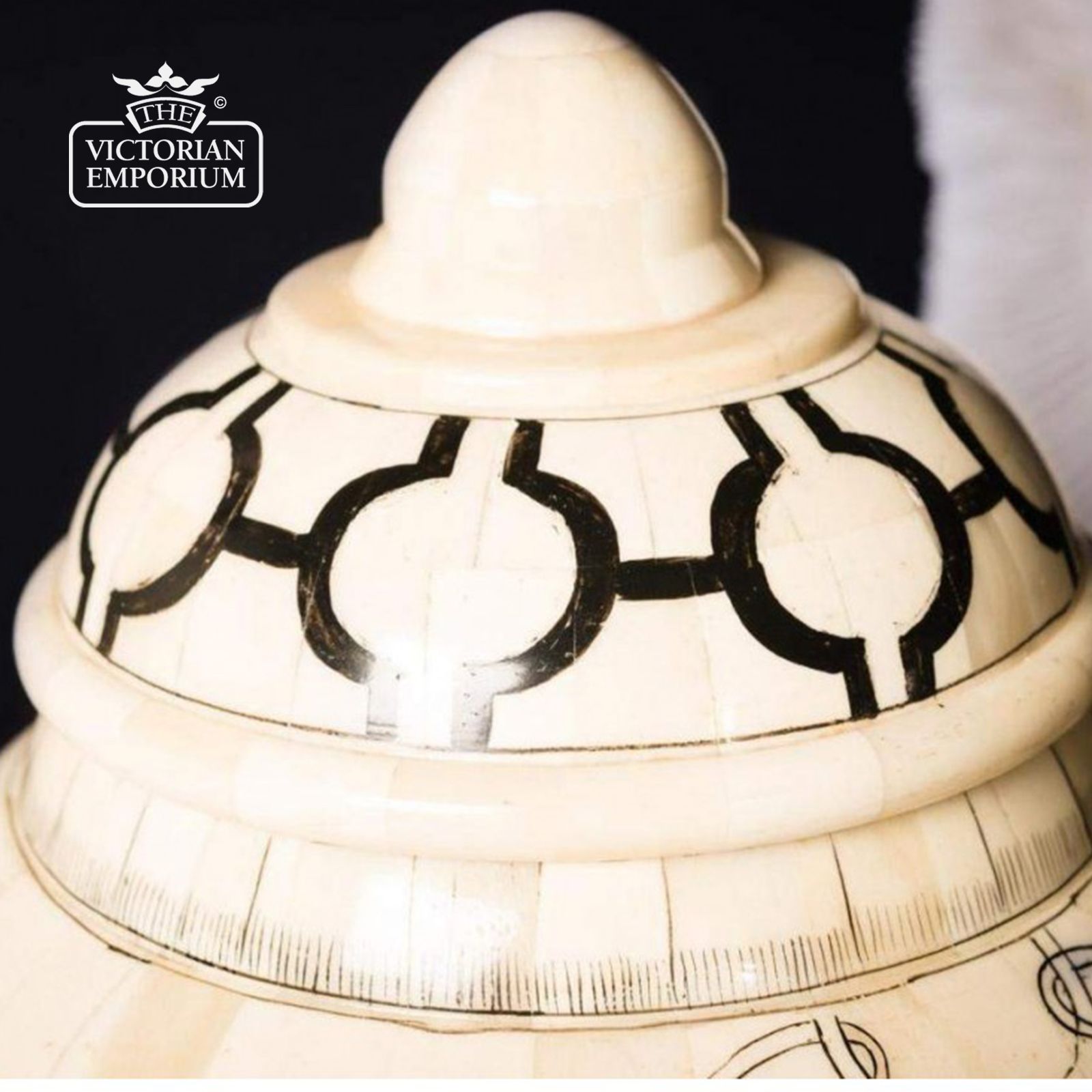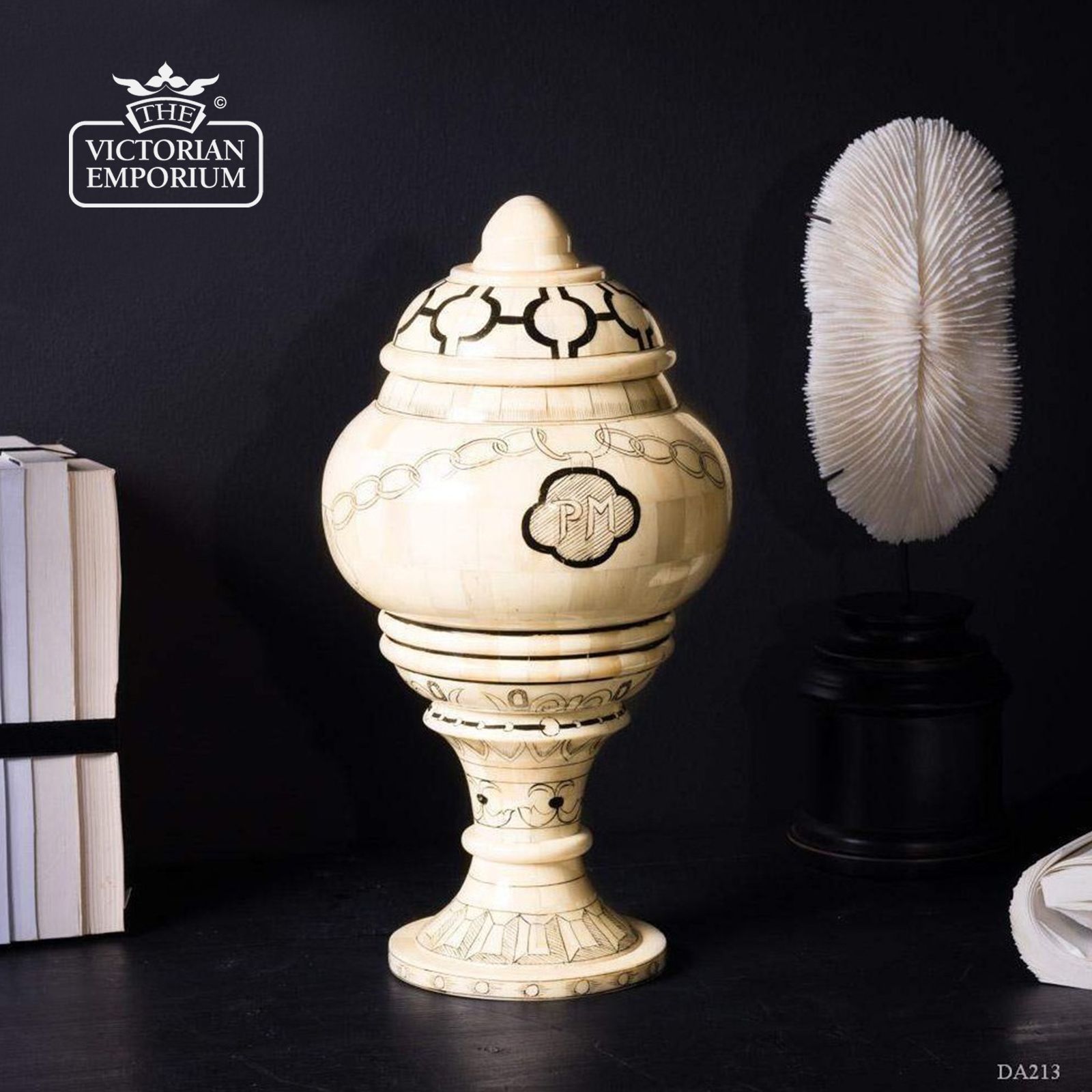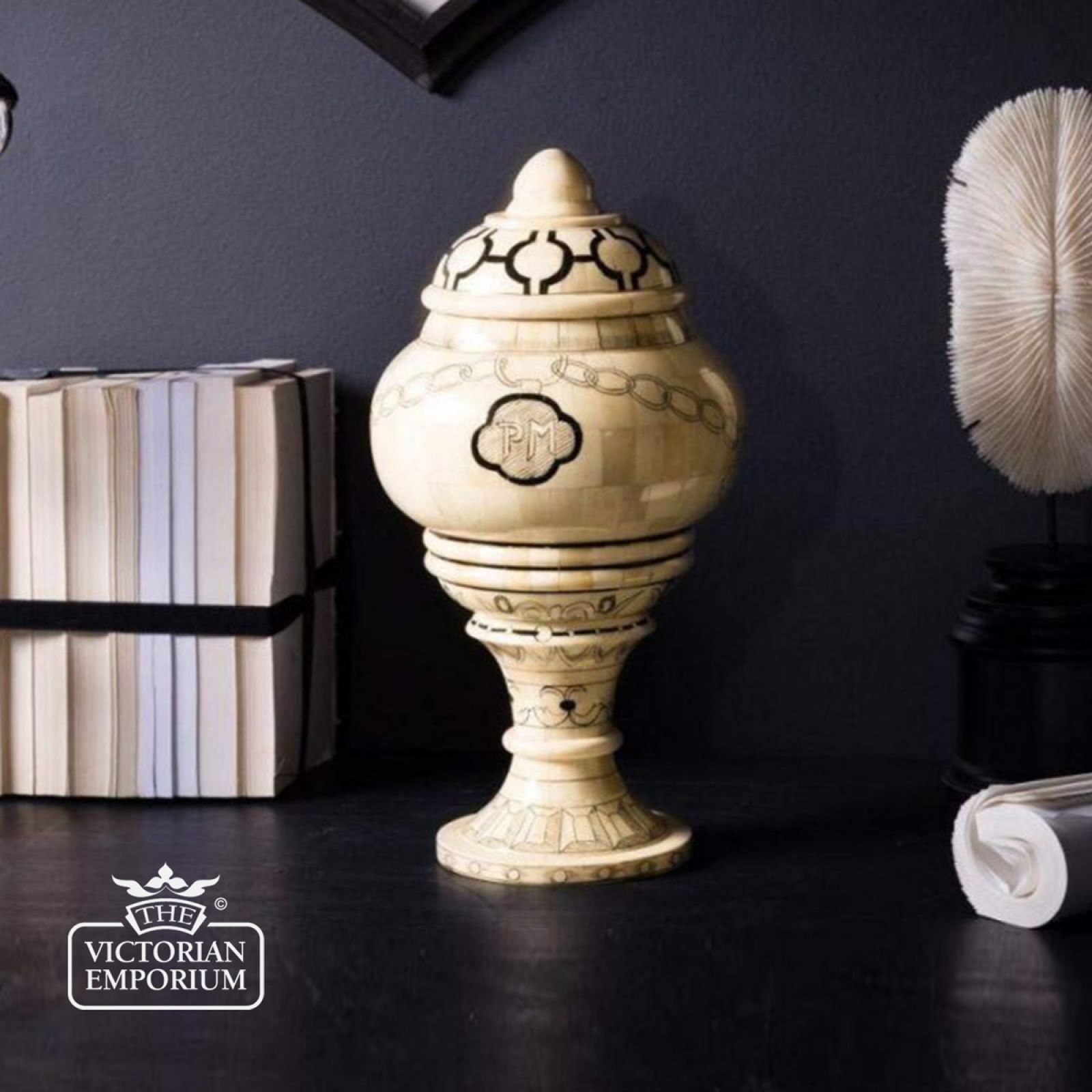This is a beautiful apothecary jar made of bone and ebony. It’s shape is inspired by the classical apothecary jars, but materials are unusual: camel bone and Chinese black ink.