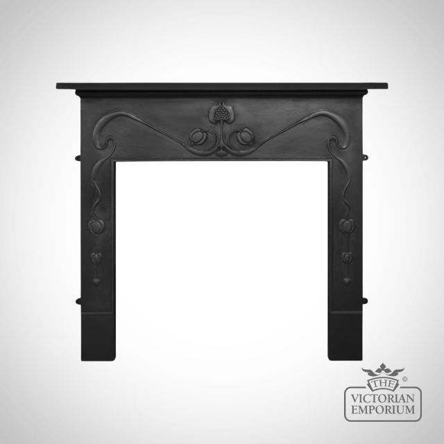 The Art Nouveau is a cast iron fireplace surround with highly decorative flower details iin a intricate linear design n the Victorian style in a polished or black finish. The design incorporates a pomegranate as the centrepiece. The Art Nouveau Surround is available two finishes - Full Polished and Black. The Full Polished surround is achieved by a high degree of polishing using fine ceramic abrasives.