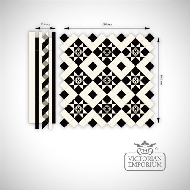 Victorian mosaic pattern tiles - sold by the m2. Ash Tree border pattern design matches