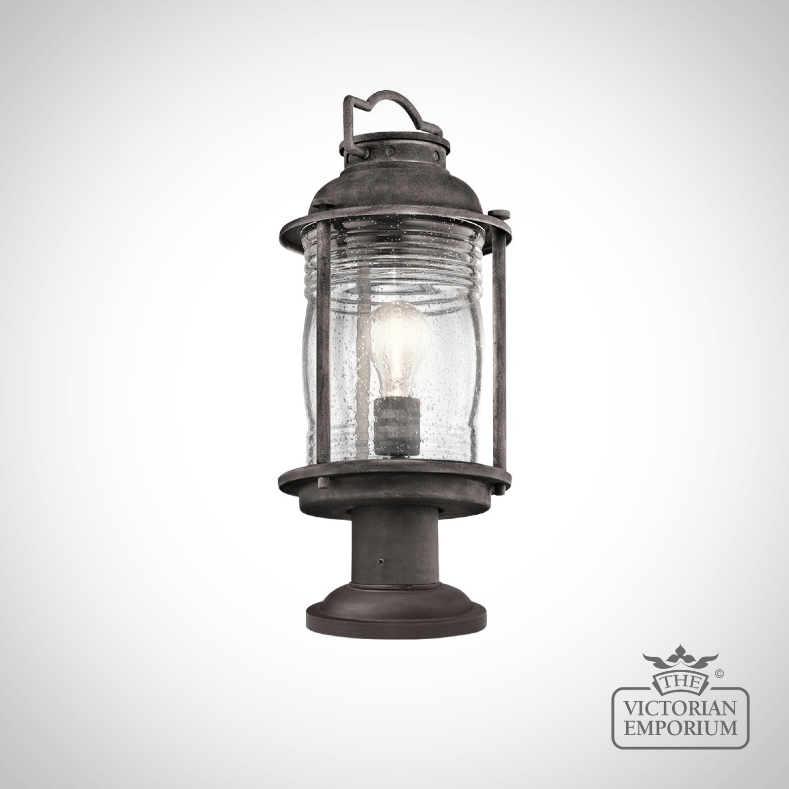 Ashland pedestal lantern in weathered zinc
