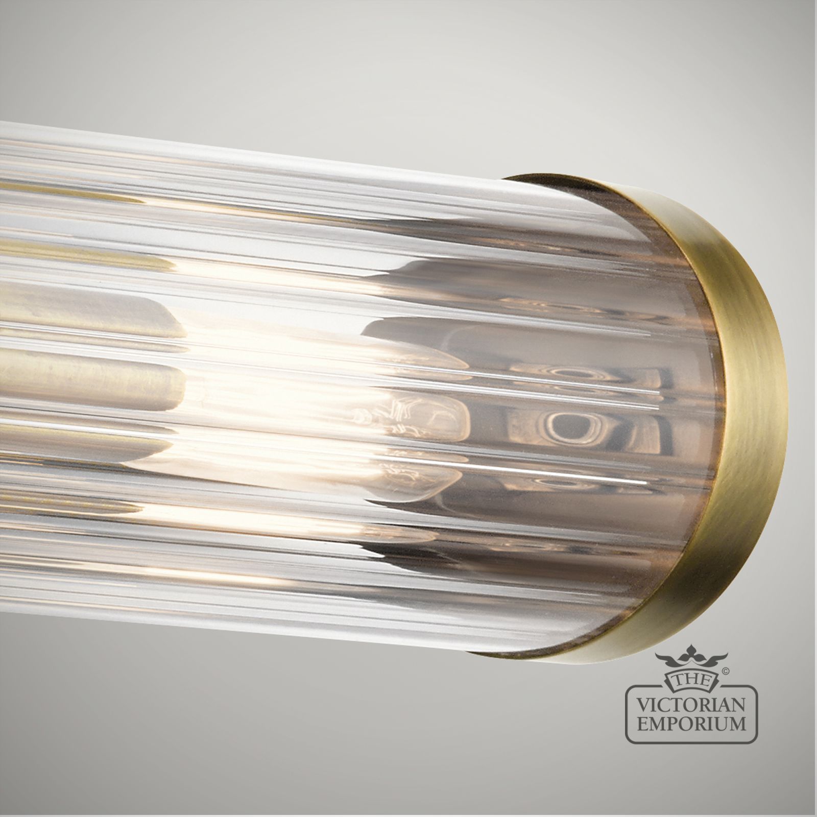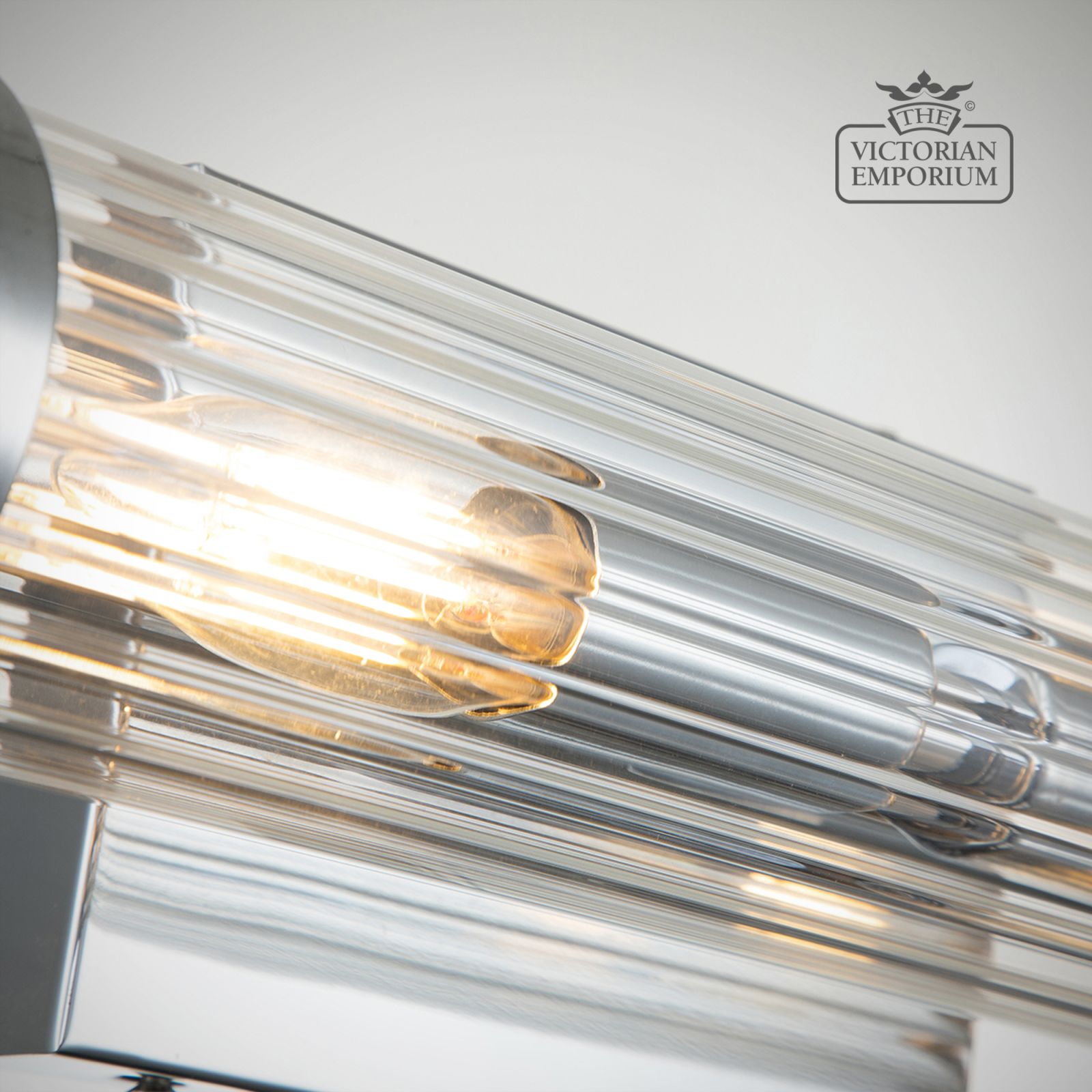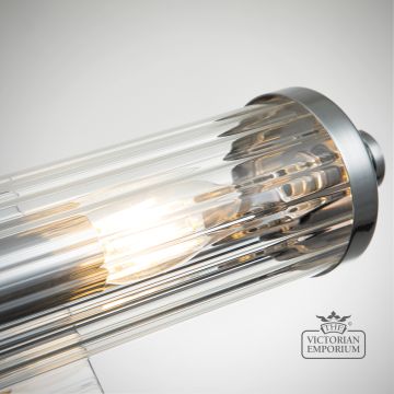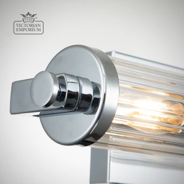 This light features a Vintage-industrial inspired silhouette. This light can be mounted horizontally only. Made from Steel and Clear Fluted GlassA really elegant bathroom light available as a 2 light or 4 light fitting.
