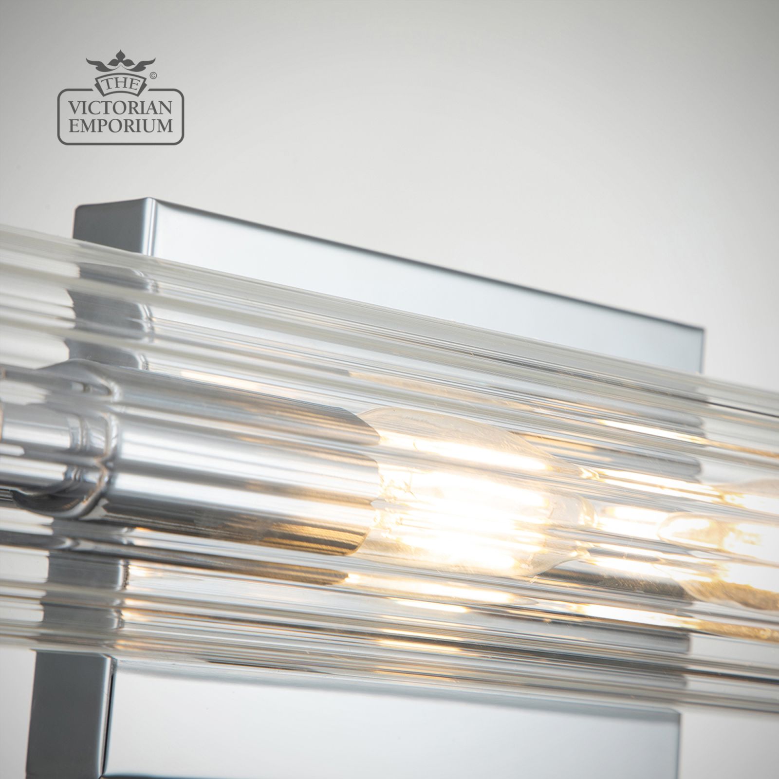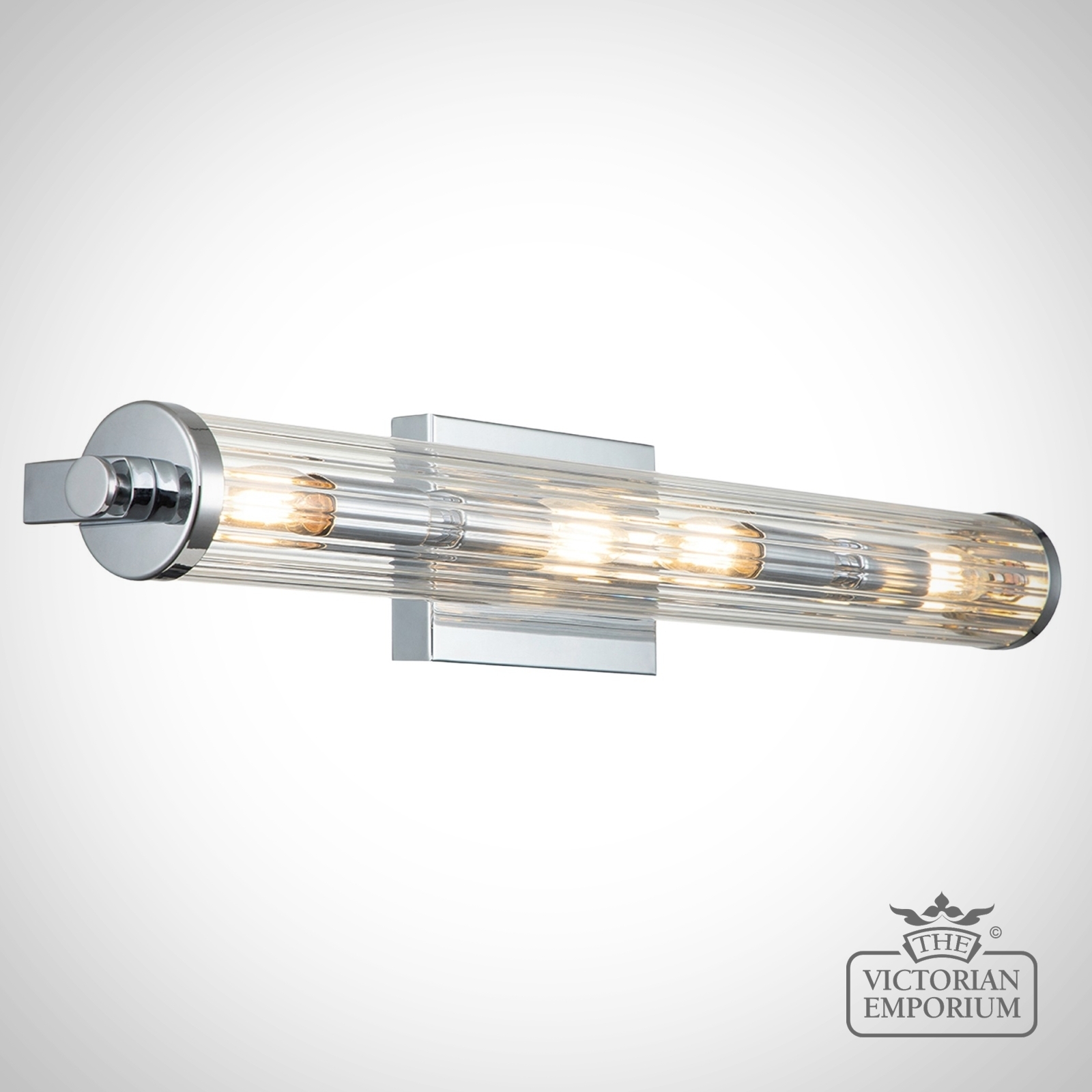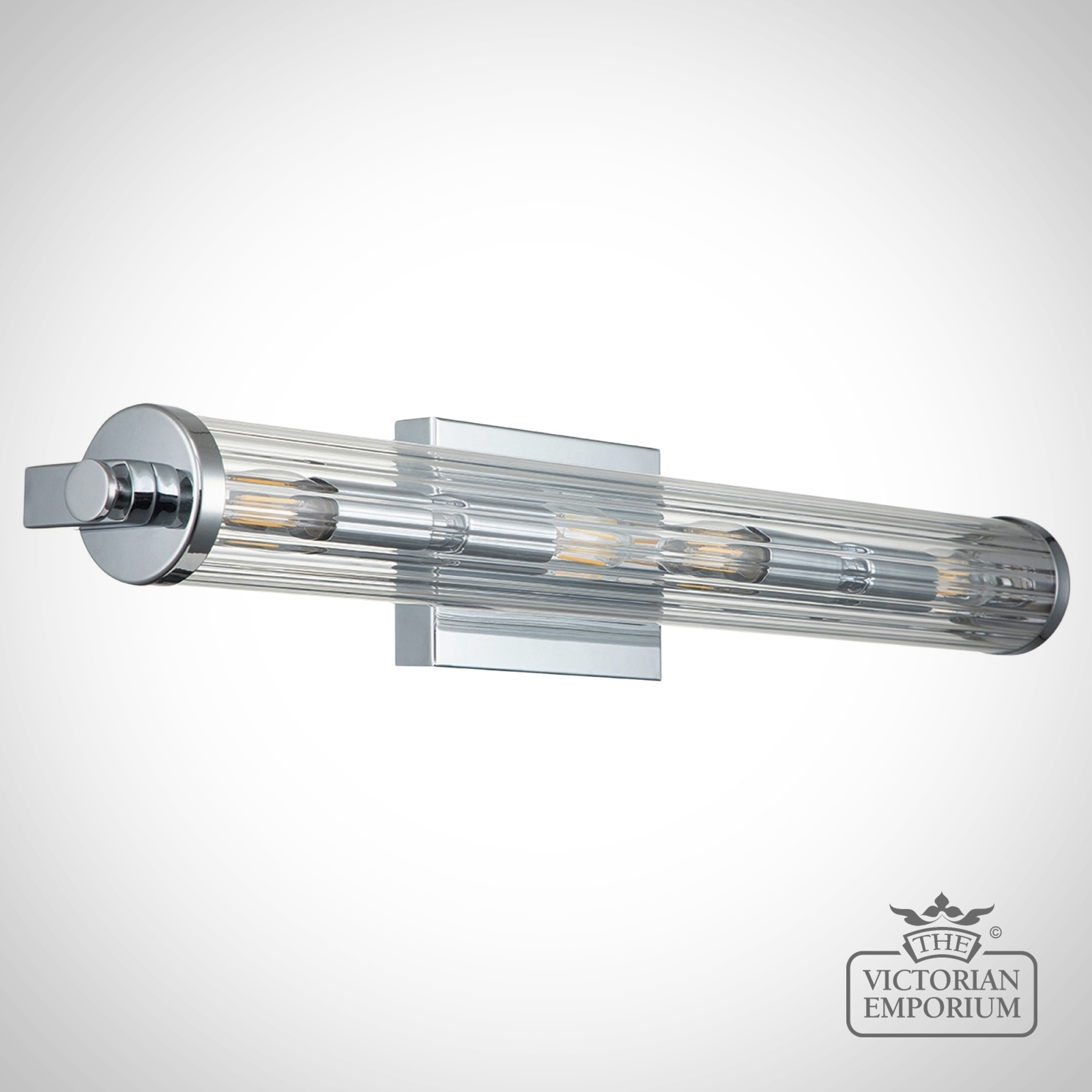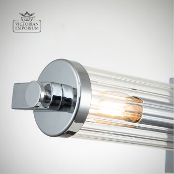 This light features a Vintage-industrial inspired silhouette. This light can be mounted horizontally only. Made from Steel and Clear Fluted GlassA really elegant bathroom light available as a 2 light or 4 light fitting.