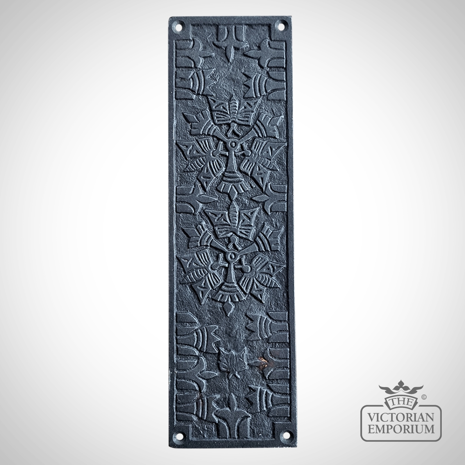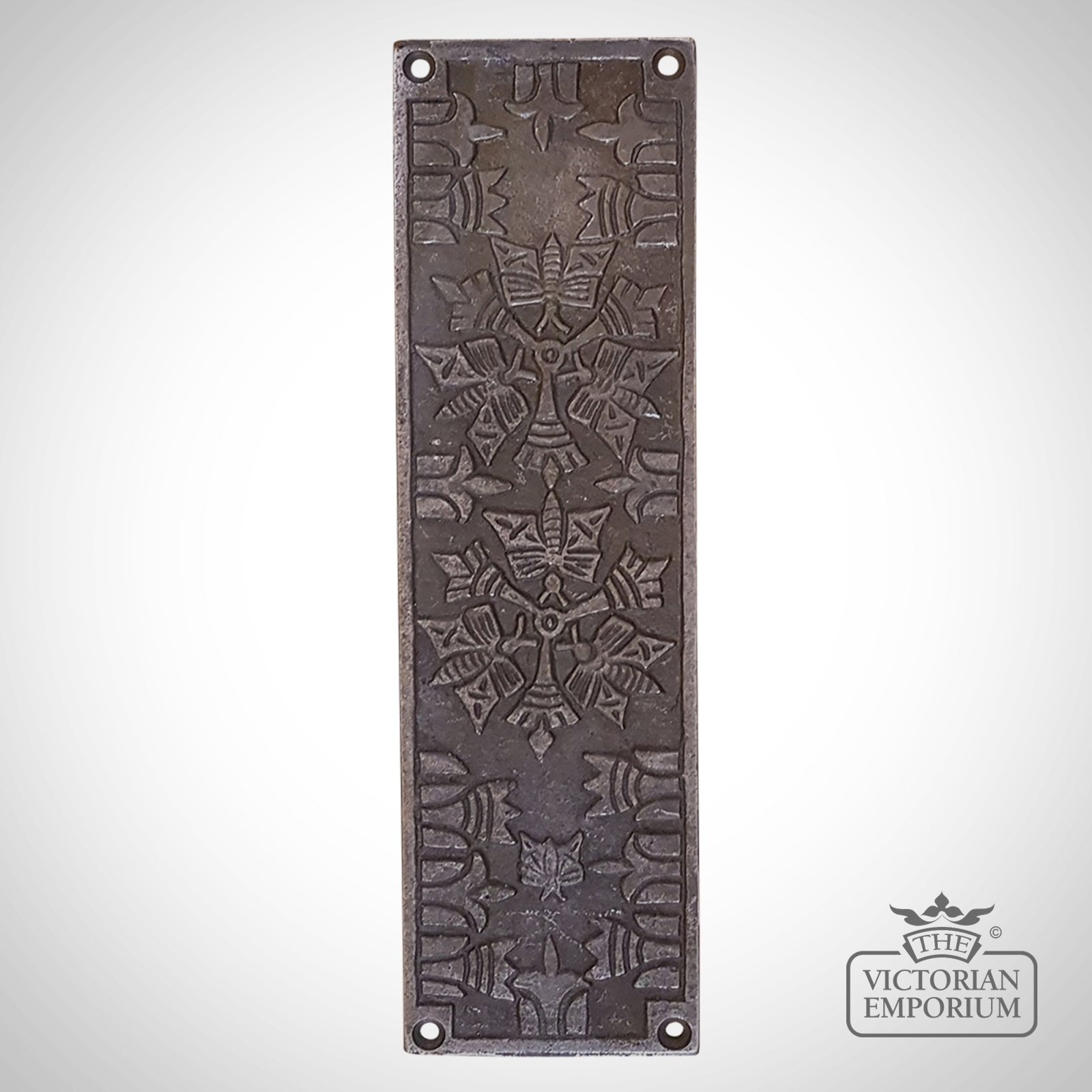 Aztec Push Finger Plate in Ornate Antique Iron
