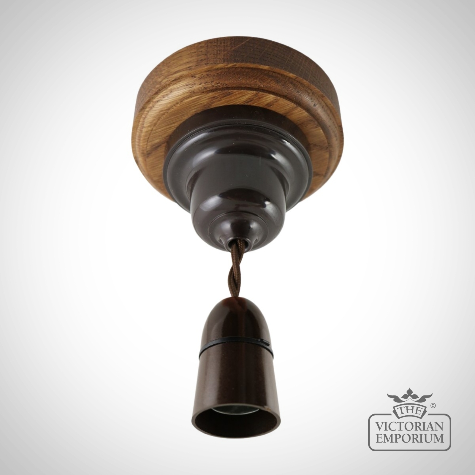 Bring vintage character into your home with this Bakelite Pendant Ceiling Light, a faithful reproduction of fittings from the early 20th century. Available in brown or white Bakelite with a choice of solid oak base finishes—Light Oak, Medium Oak, Dark Oak, Antique Mahogany or painted White—it complements both period interiors and contemporary spaces seeking a retro touch.
