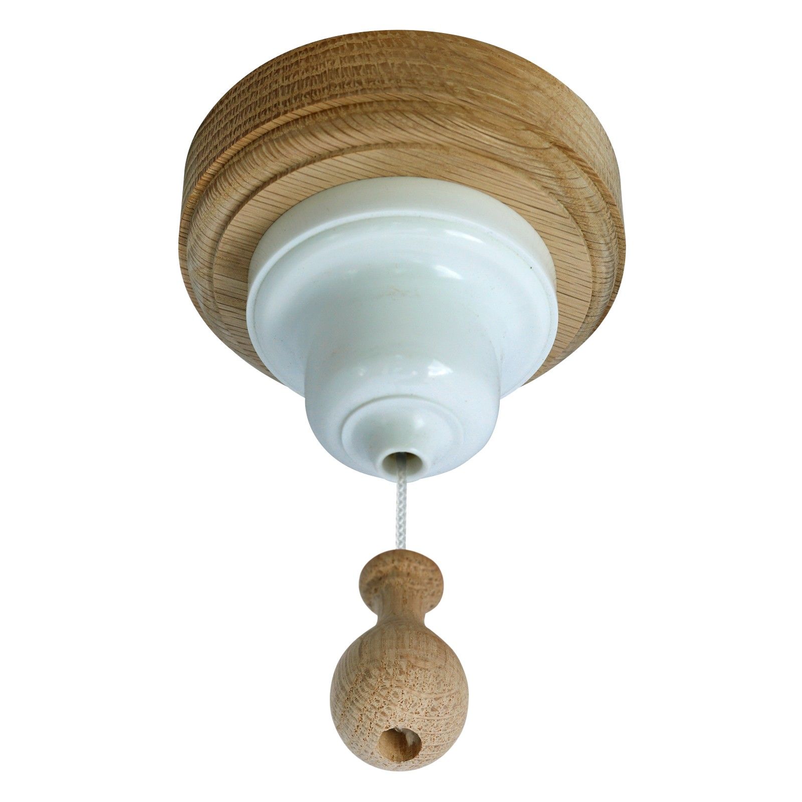 Bakelite Pull Switch in White with Wooden Ceiling Plate