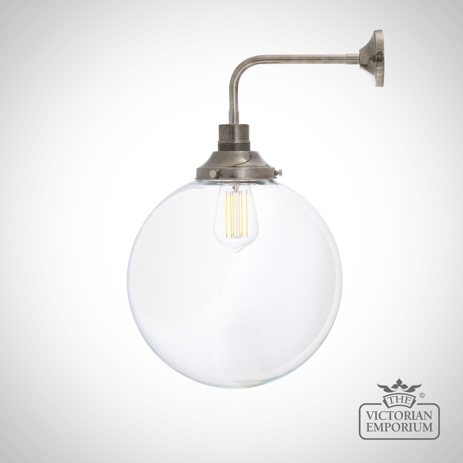 A brass gallery is secured to a contemporary lamp holder that holds the Bamako's glass globe lamp shade in place. This glass globe can be clear or opal colour.