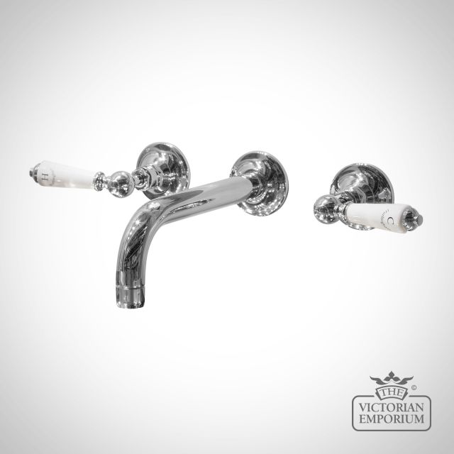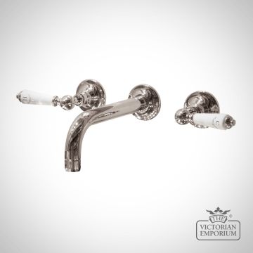 Basin taps in a classic lever design but wall mounted and in 3 pieces - hot tap, cold tap and spout