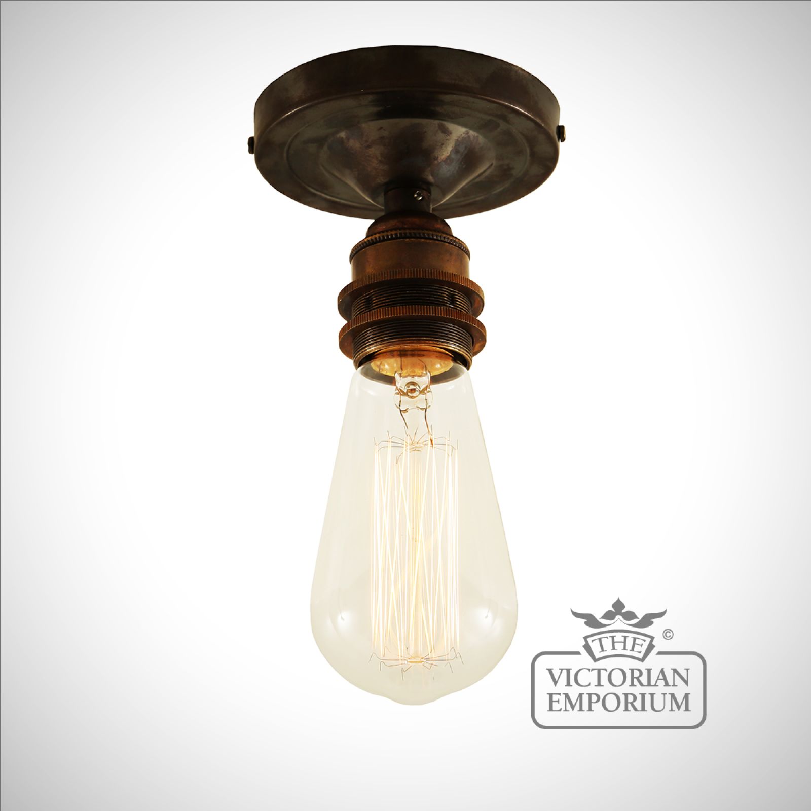 With an exposed light bulb, this vintage flush ceiling light will provide a wide illumination even in small areas and looks great when teamed with an Edison-style filament bulb to enhance an industrial atmosphere. Bulbs are sold separately.