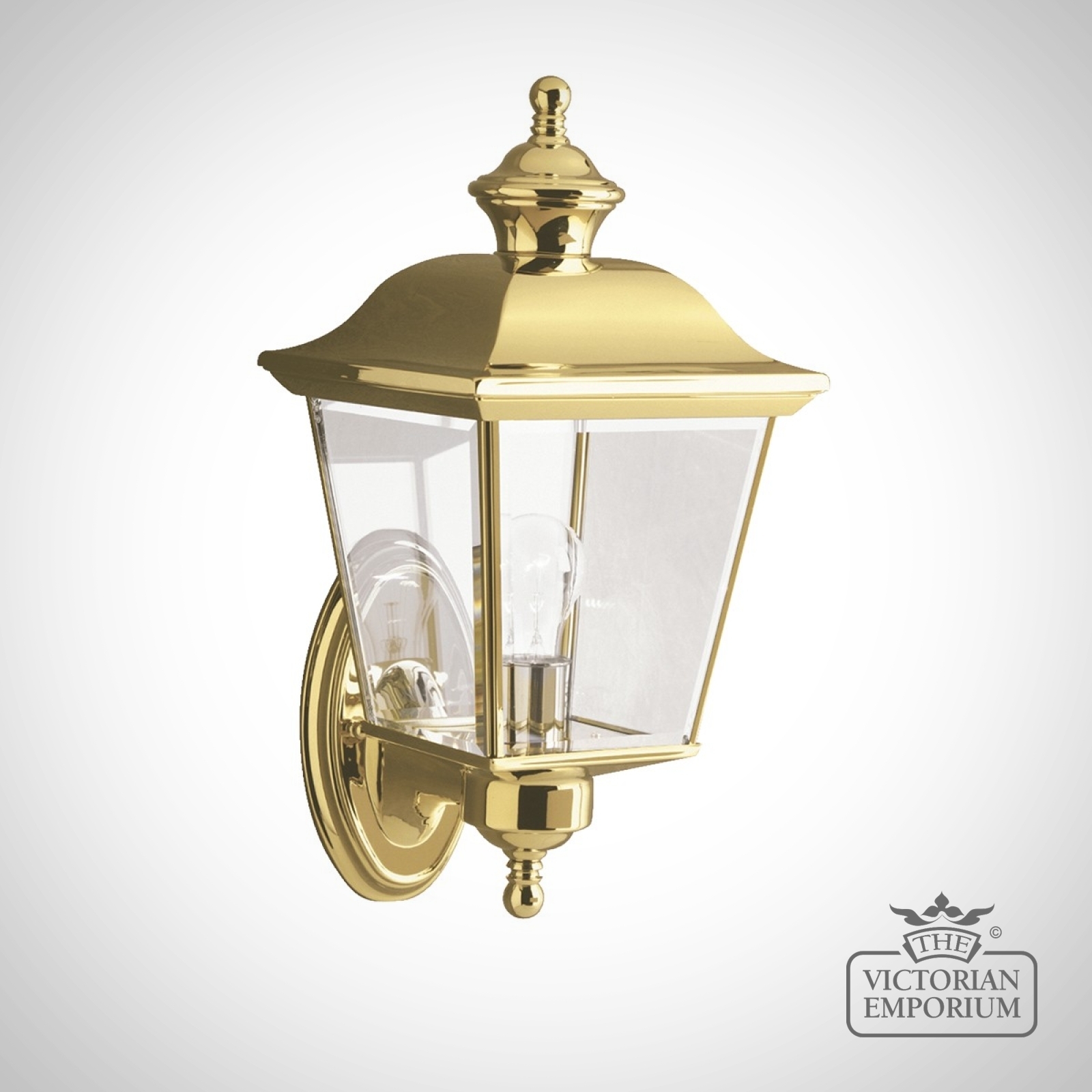 This stunning medium sized lantern is in polished solid brass guaranteed for 5 years but designed for the harshest of weather conditions. It features clear bevelled glass panels in the brass frame