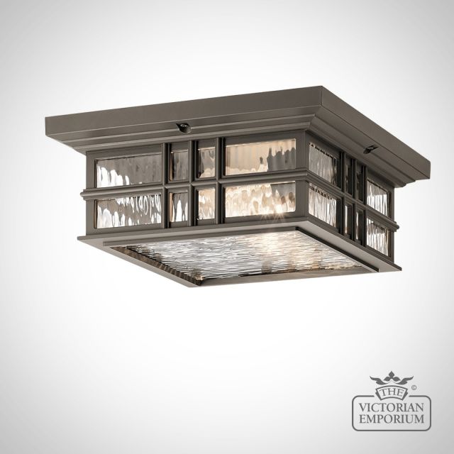 The Beacon outdoor ceiling light features clean lines in a versatile style, crafted from a composite material and designed to withstand harsh outdoor elements