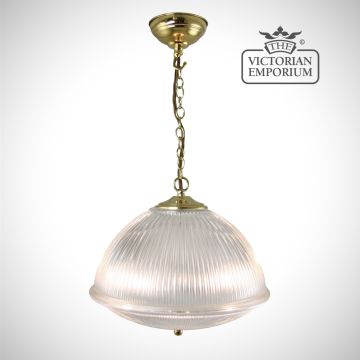 This is a simple dome shaped ceiling light with a dish in a polished brass finish
